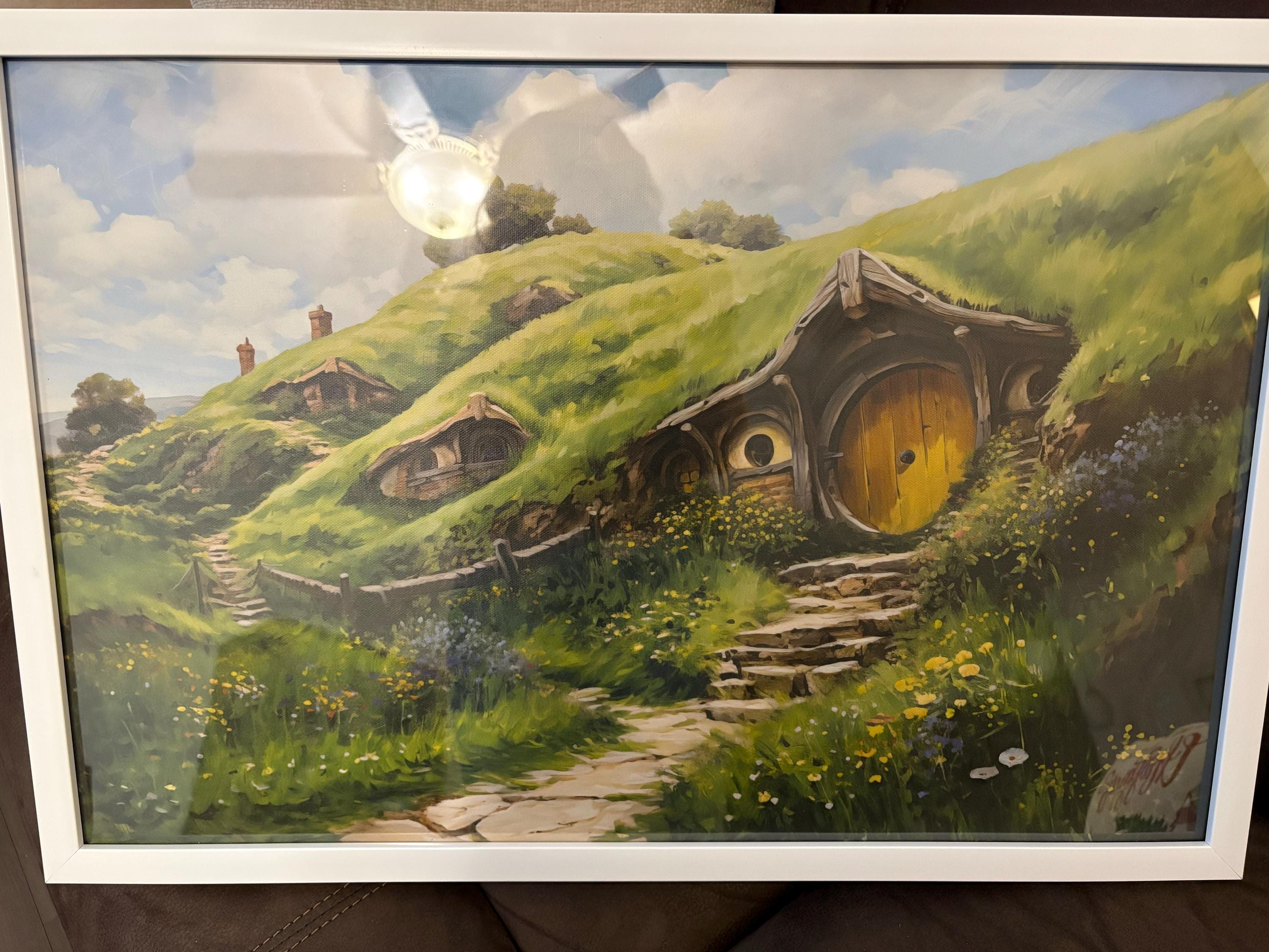 The Shire Oil Painting Framed Canvas. Hobbitcore Decor. Hobbit Hole Landscape Art. Halfling House Wall Art. Cozy Earth Home Canvas Art Print