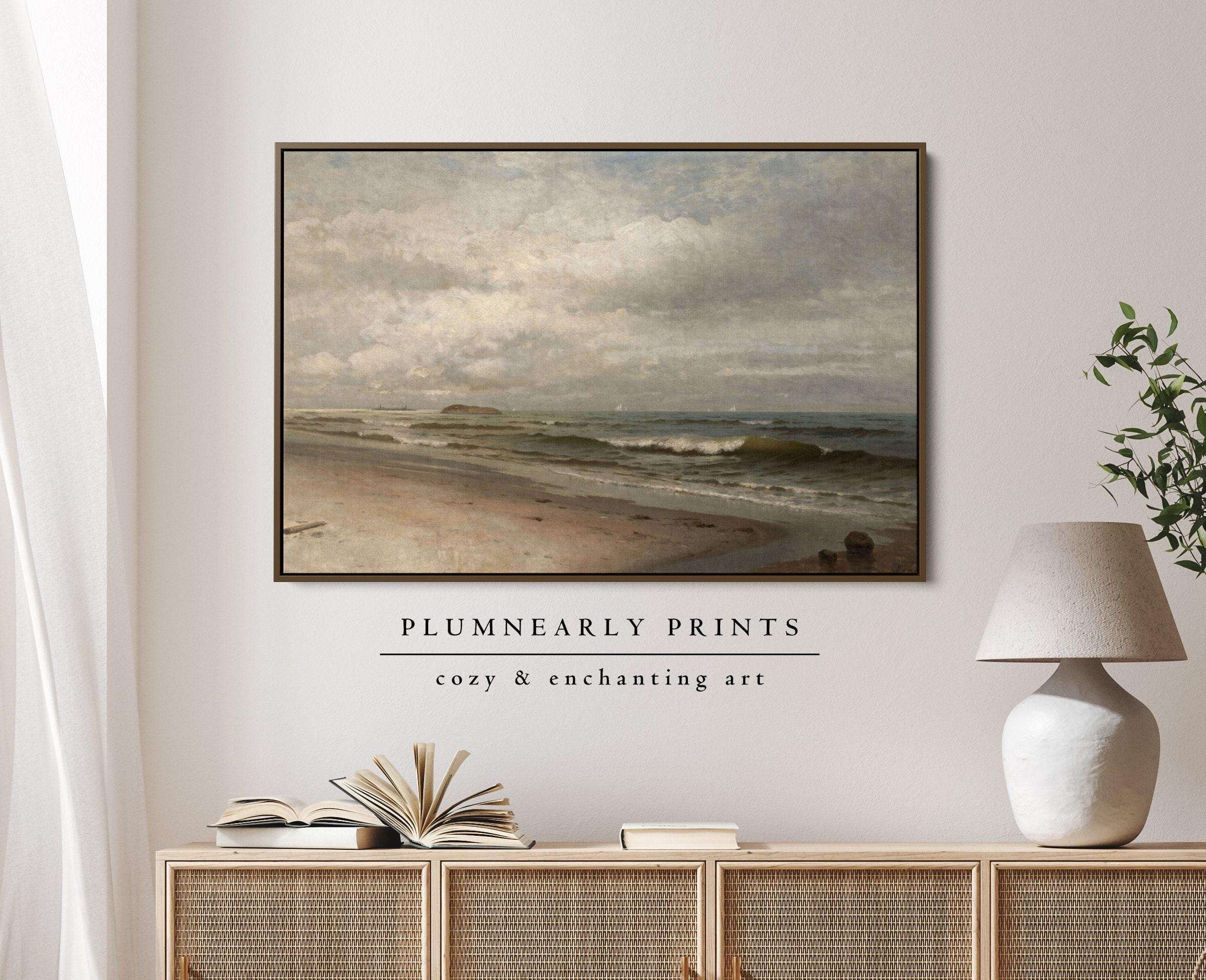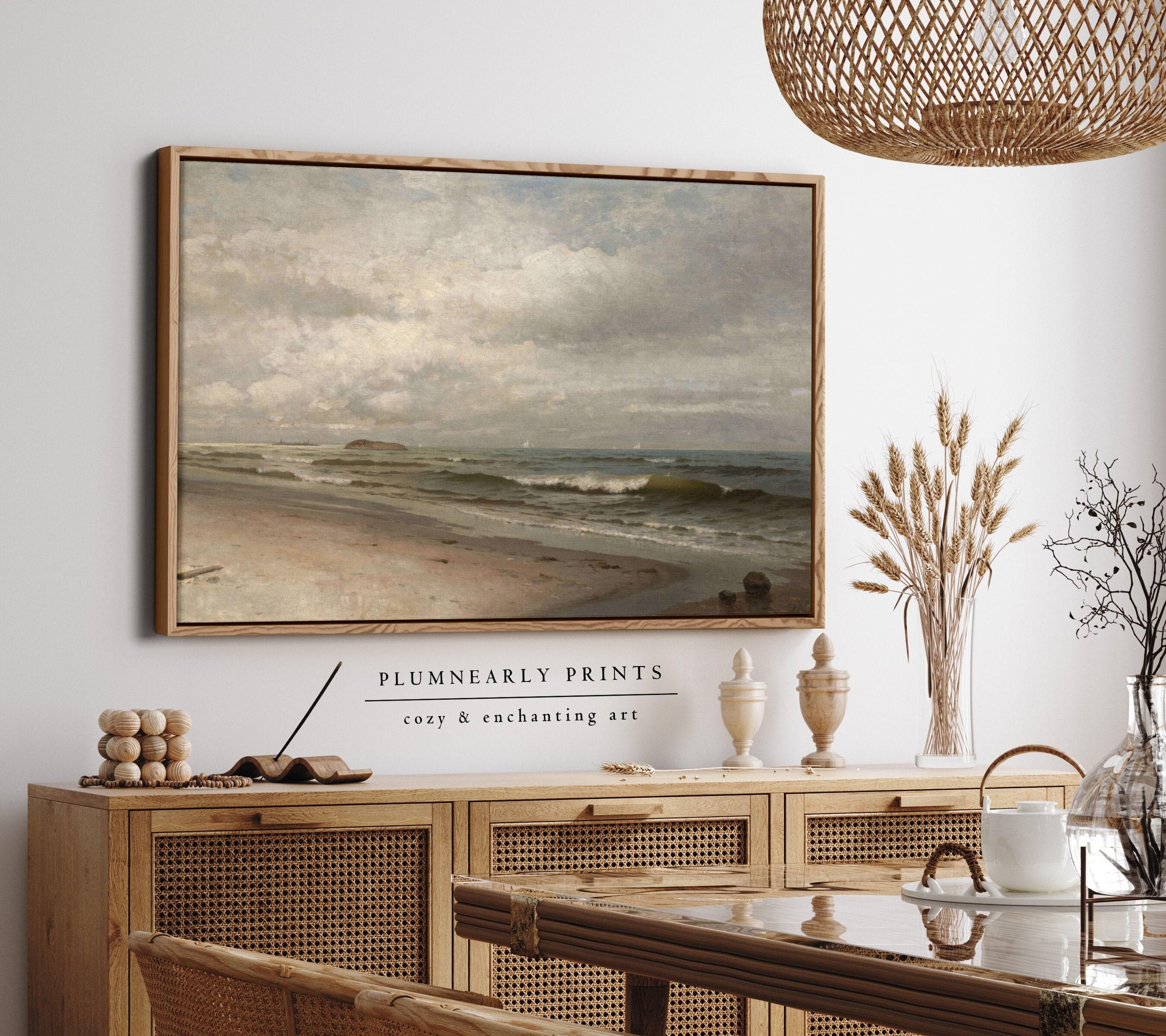 Beach Landscape Oil Painting Framed Canvas, Vintage Seascape Classic Beach Wall Art, Coastal Decor, Ocean Waves Poster, Nautical Theme
