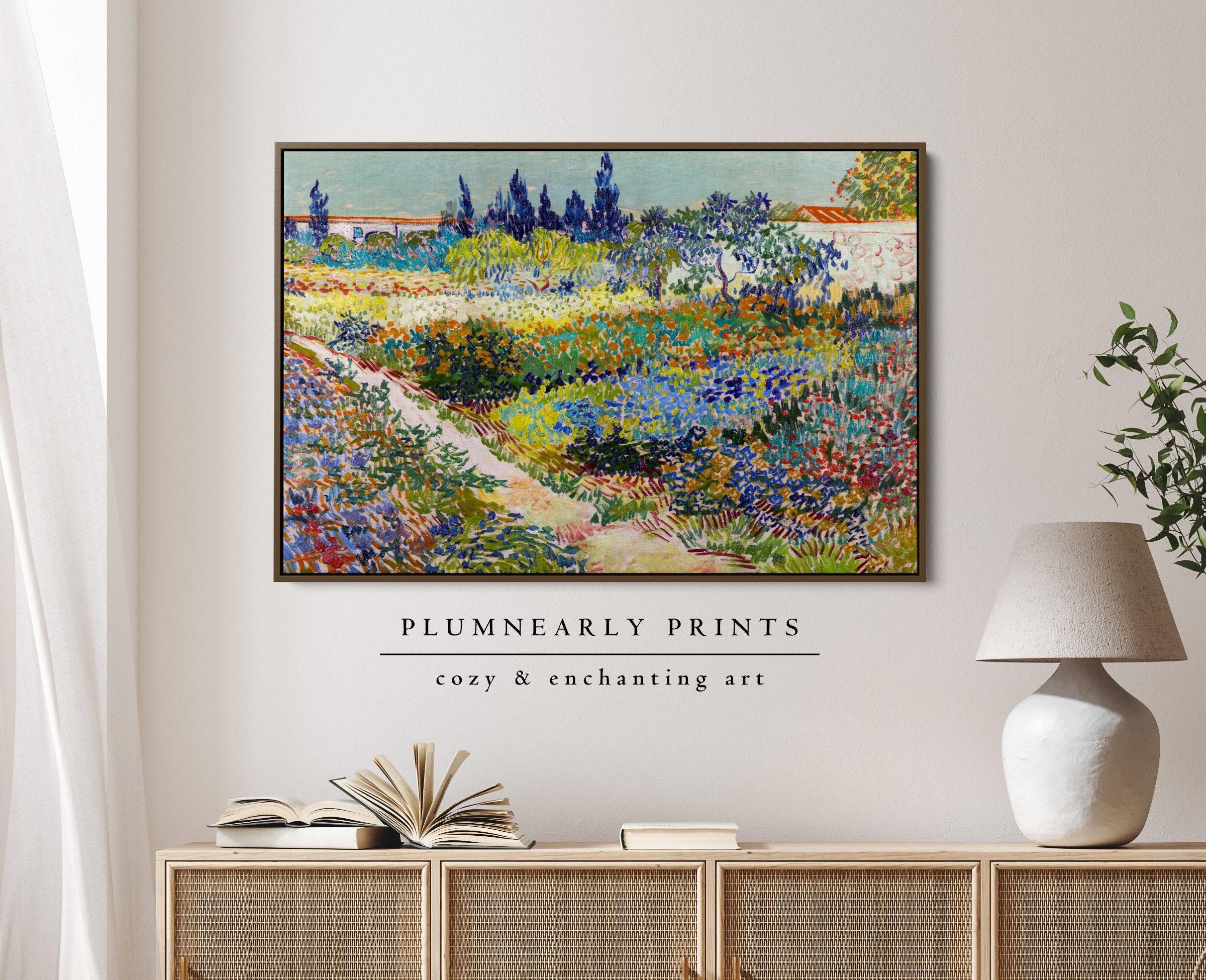 Van Gogh French Country Garden Landscape Oil Painting Framed Canvas, Vibrant Impressionist Floral Artwork, Bold Maximalist Wall Decor