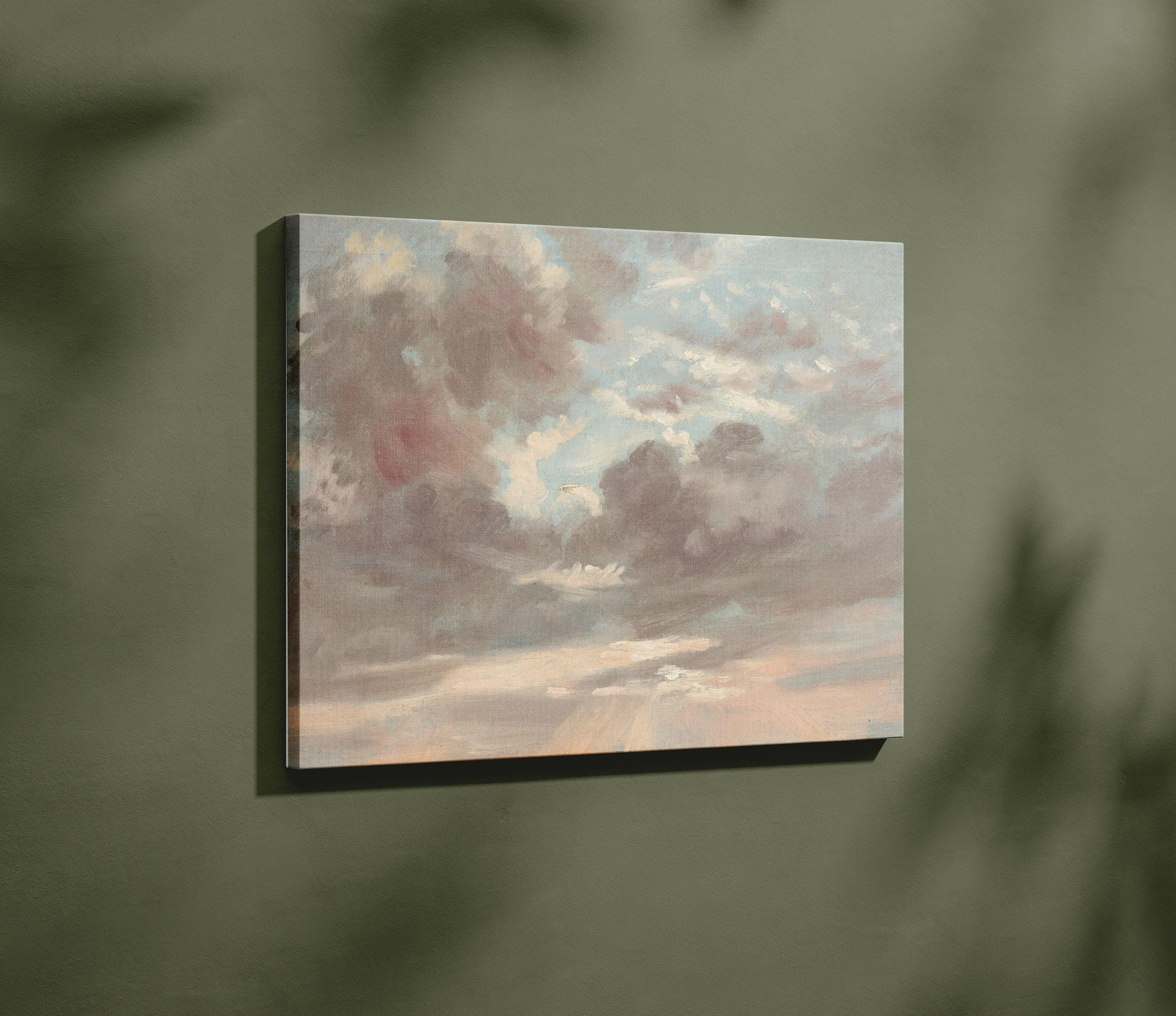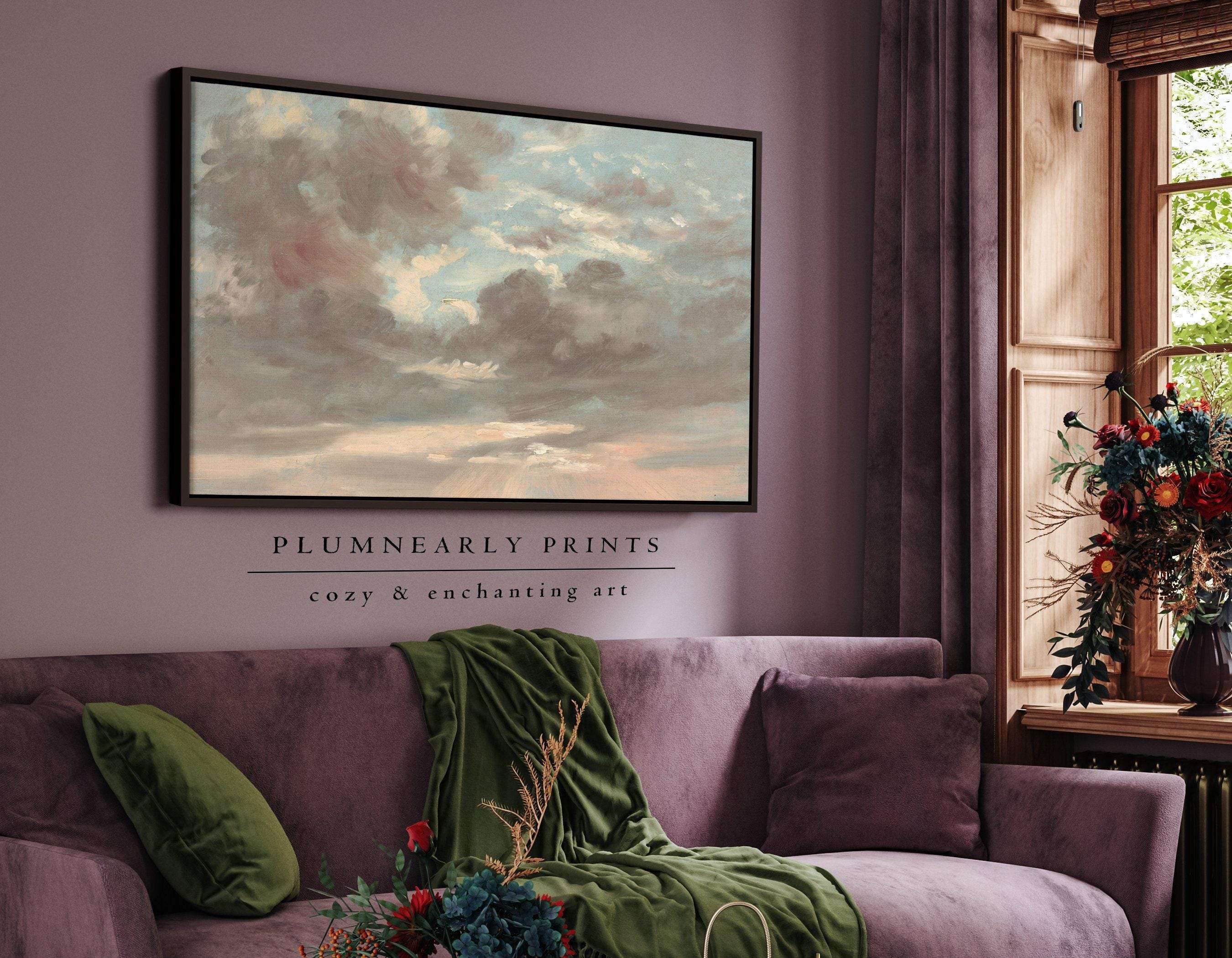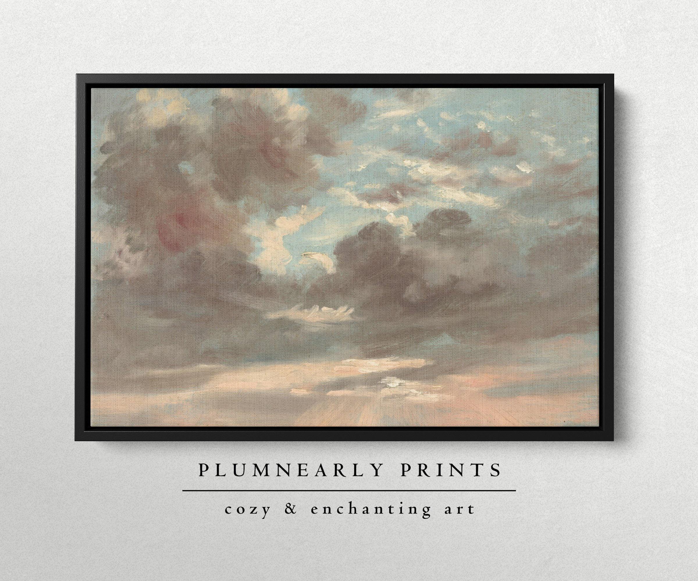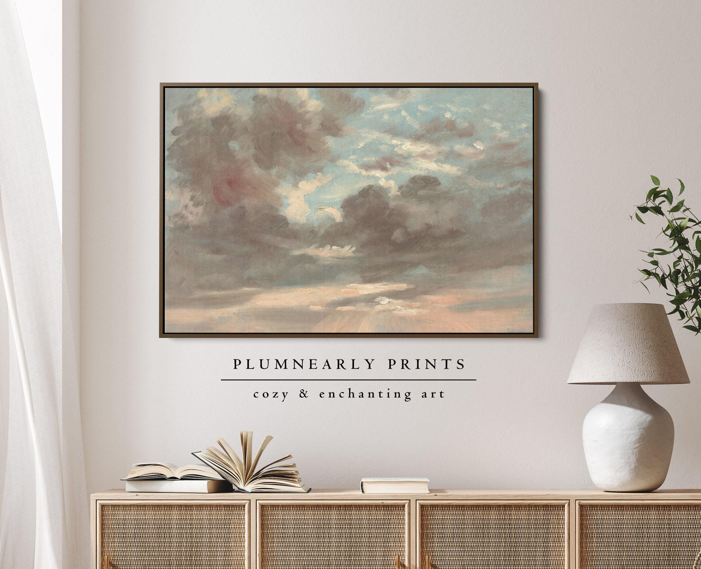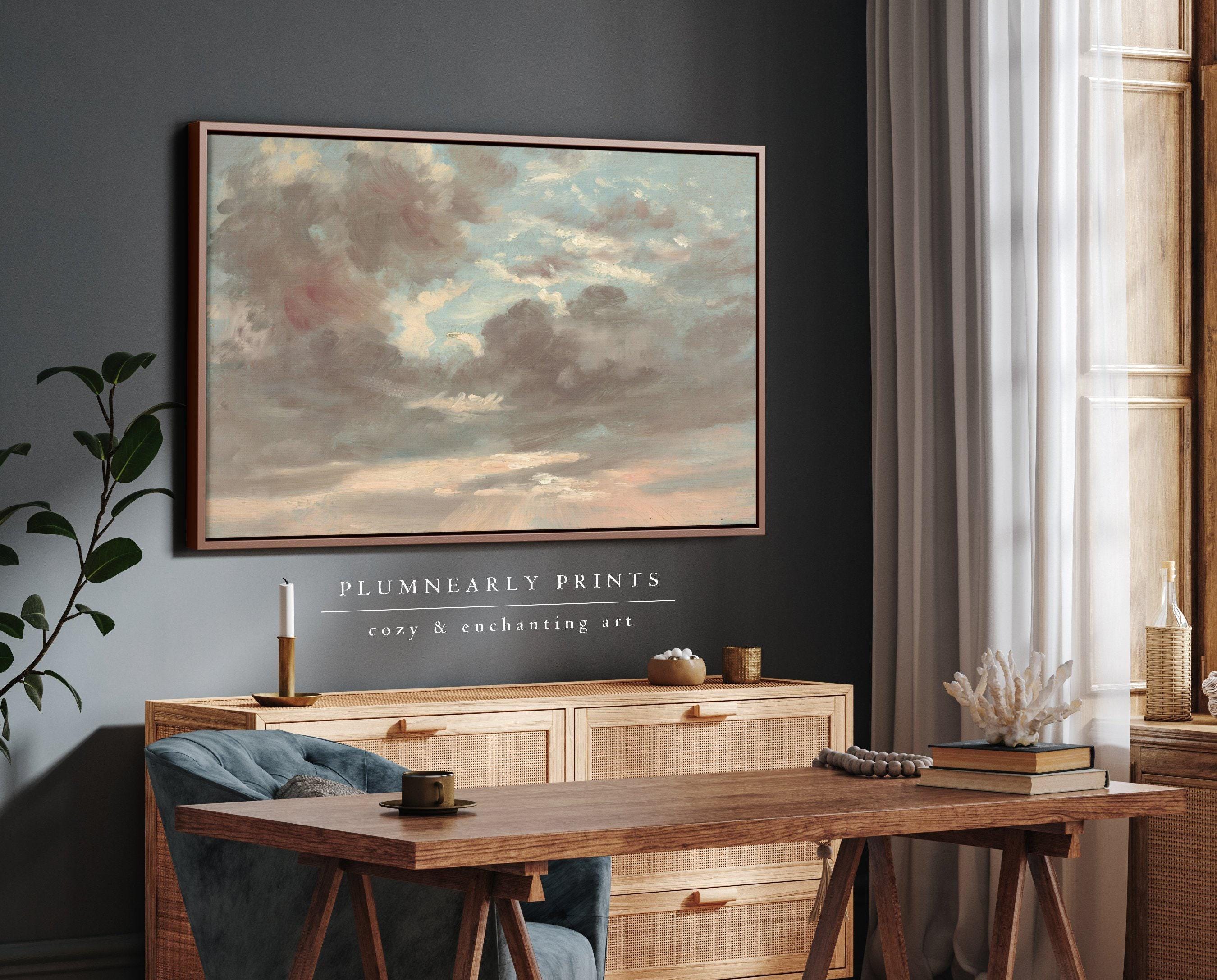 Clouds Landscape Oil Painting Framed Canvas Art, Vintage Moody Impressionist Pastel Sky Wall Art, Golden Hour Sunset Luxury Home Decor