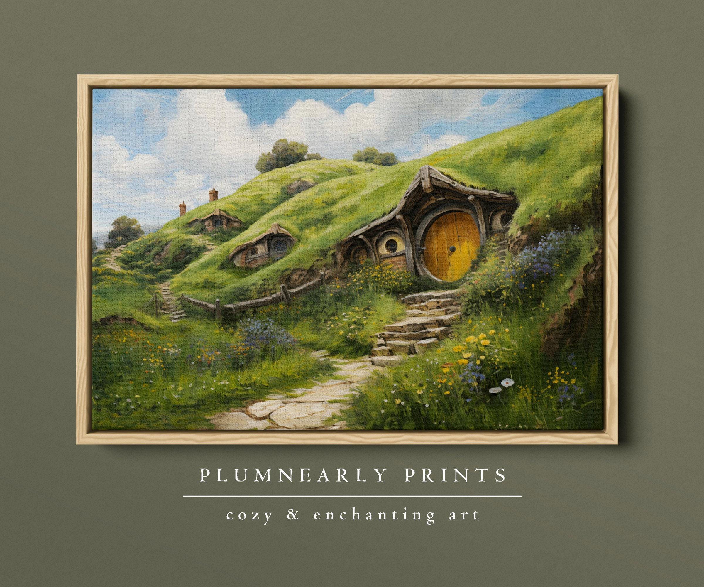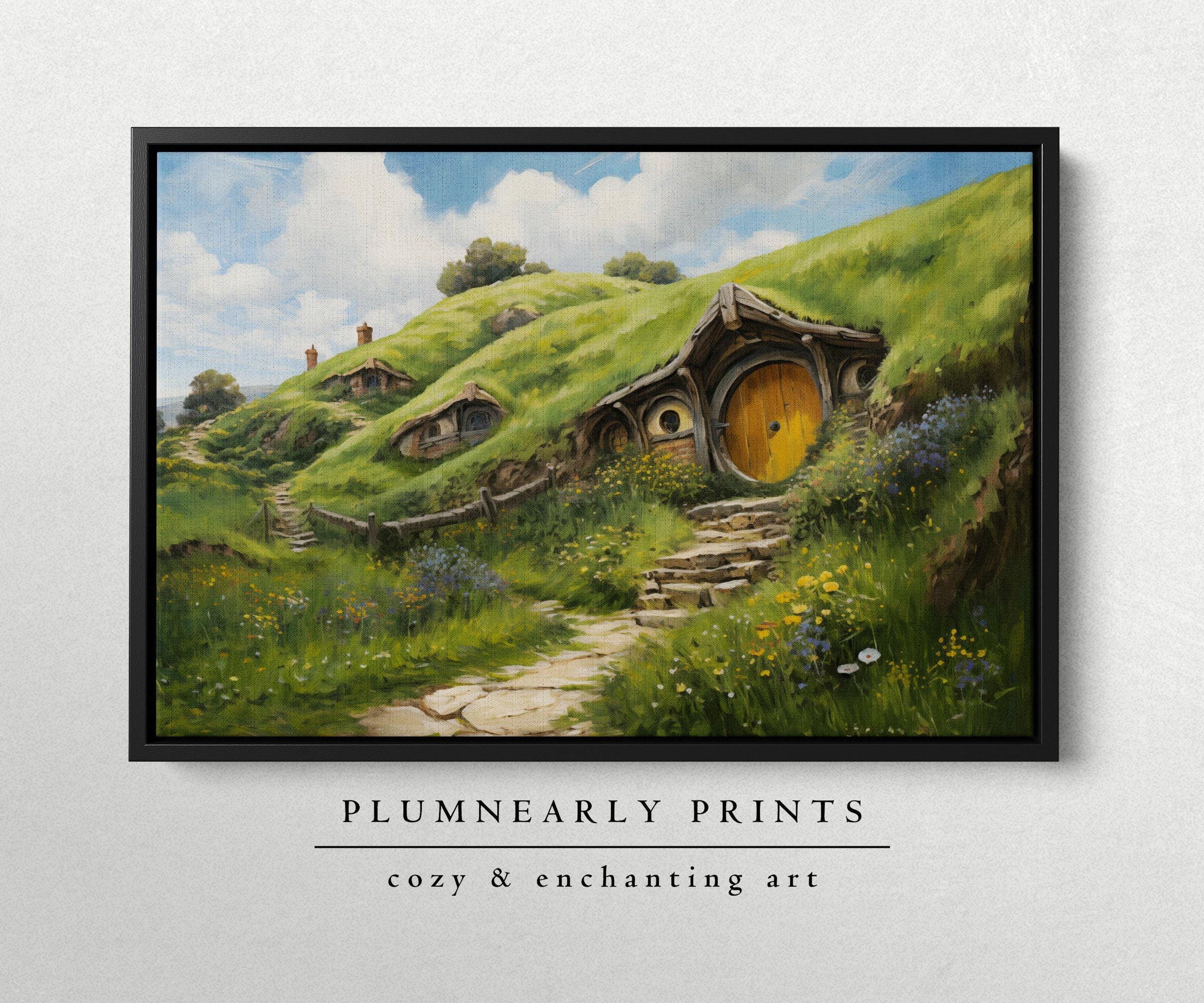 Hobbit House Painting Framed Canvas Art, The Shire Wall Art, Hobbitcore Fantasy Landscape Home Decor, Whimsical Canvas Fantasy Lovers Gift