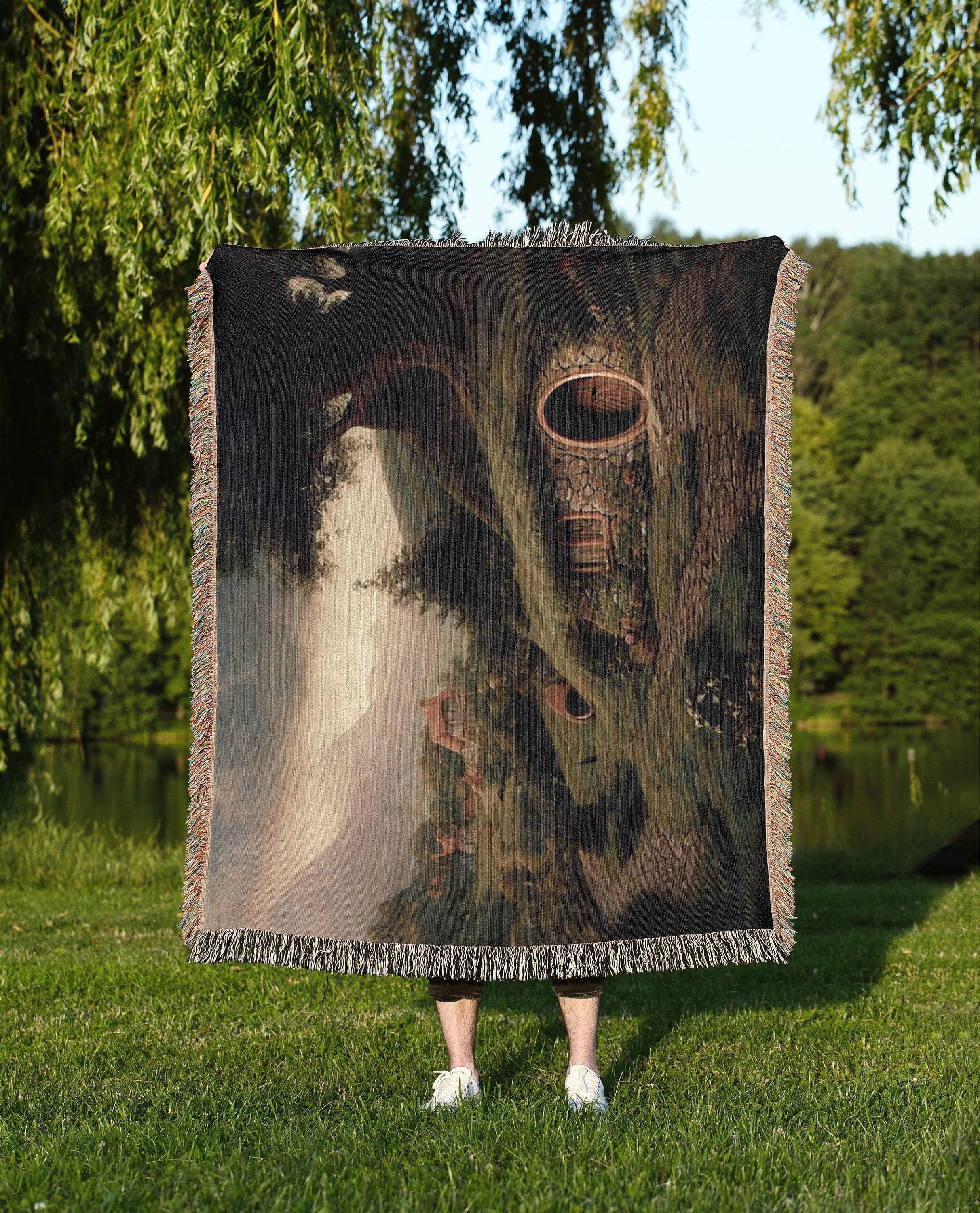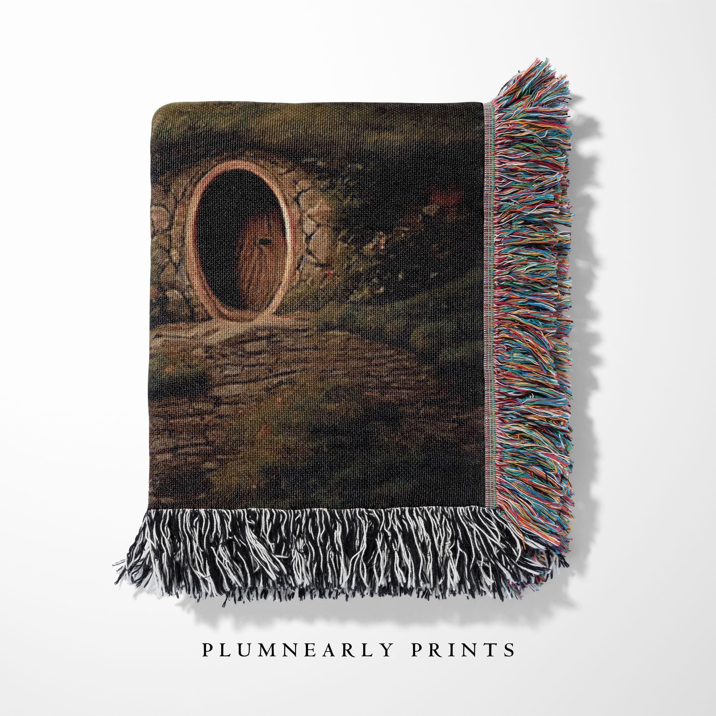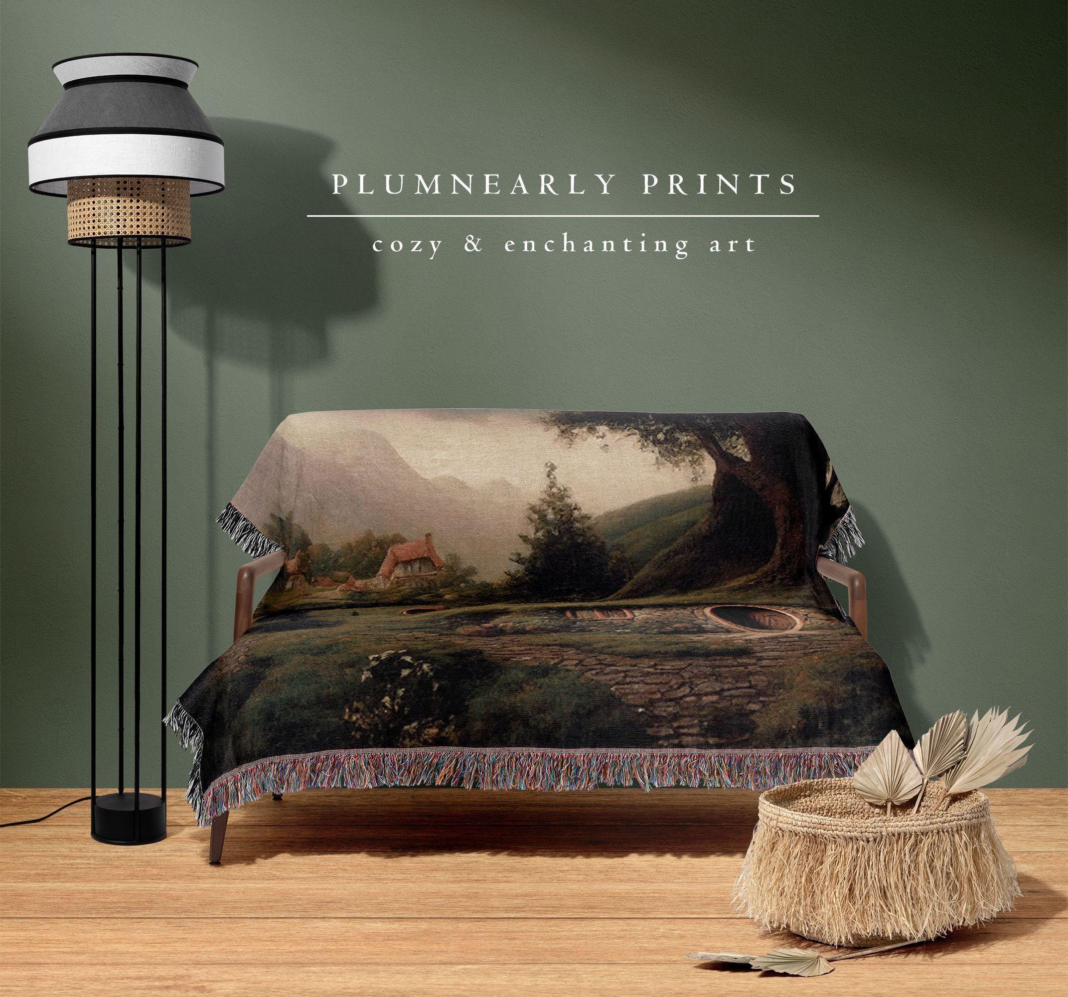 The Shire Oil Painting Woven Throw. Hobbitcore Home Decor. Hobbit House Door Wall Tapestry. Fantasy Book Lover Gift. Minky Sherpa Blanket
