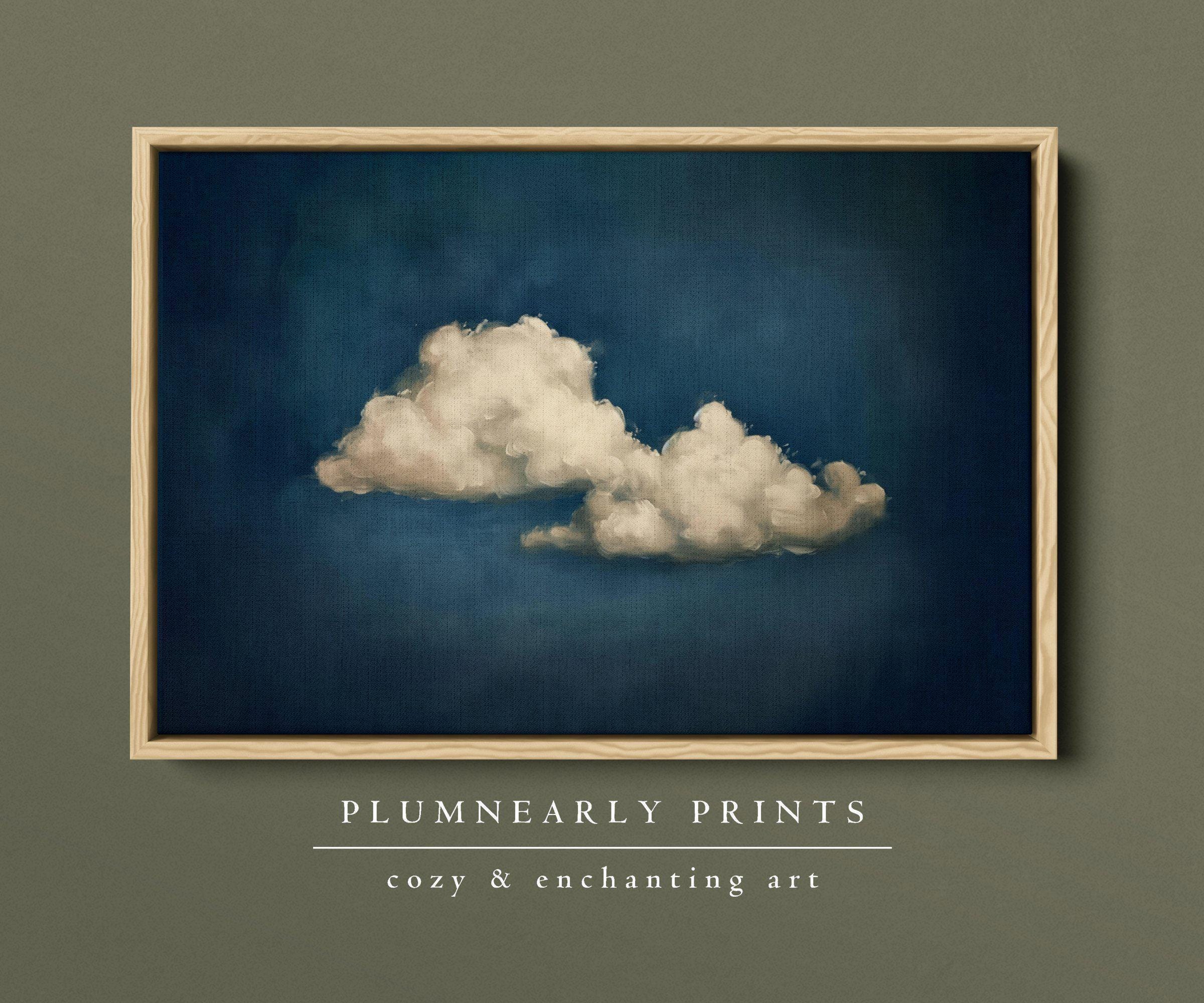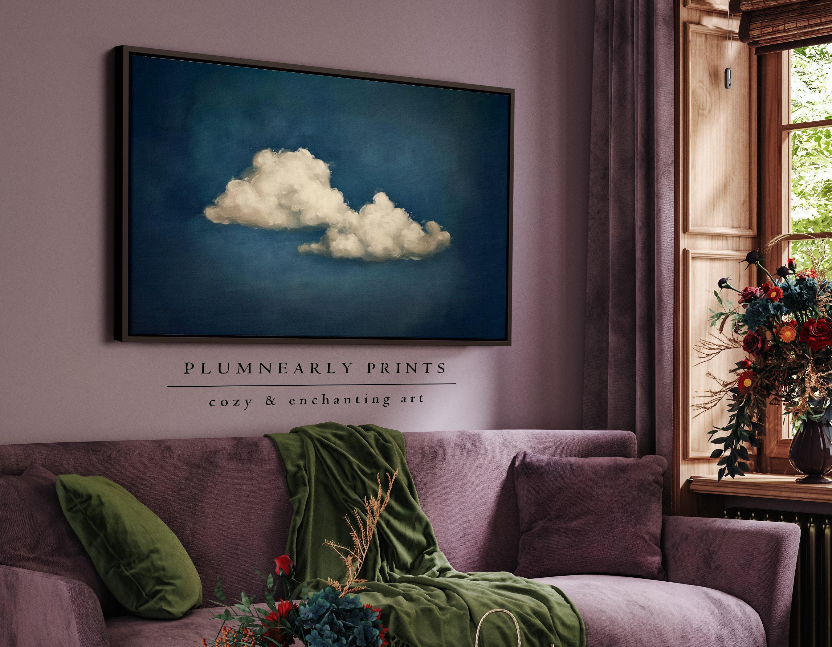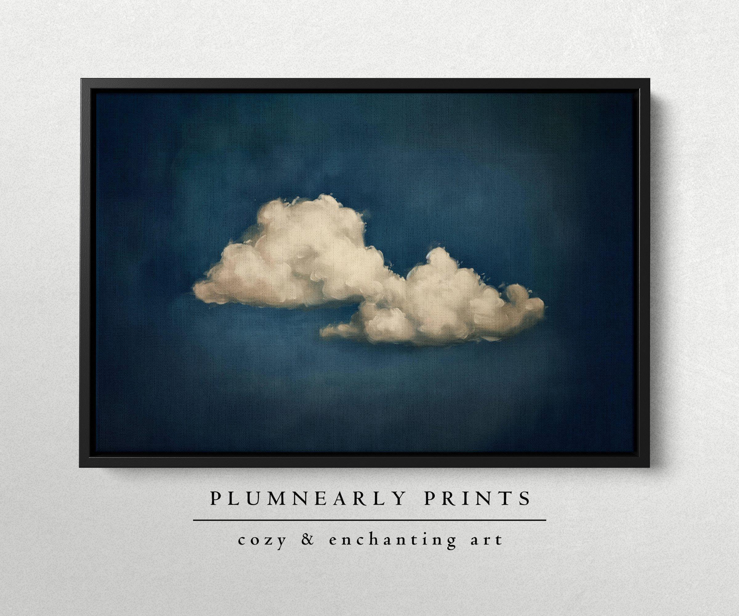 Elevate your space with this serene abstract cloud artwork, featuring a soft and dreamy portrayal of a lone cloud against a deep blue sky. Perfectly suited for a modern aesthetic, this wall art becomes the focal point of any room, adding a touch of tranquility and minimalist elegance. Ideal for your living room, bedroom, or office, this print promises to infuse your surroundings with a calm, peaceful vibe. It's a beautiful gift for art lovers and a stylish update to any home decor.