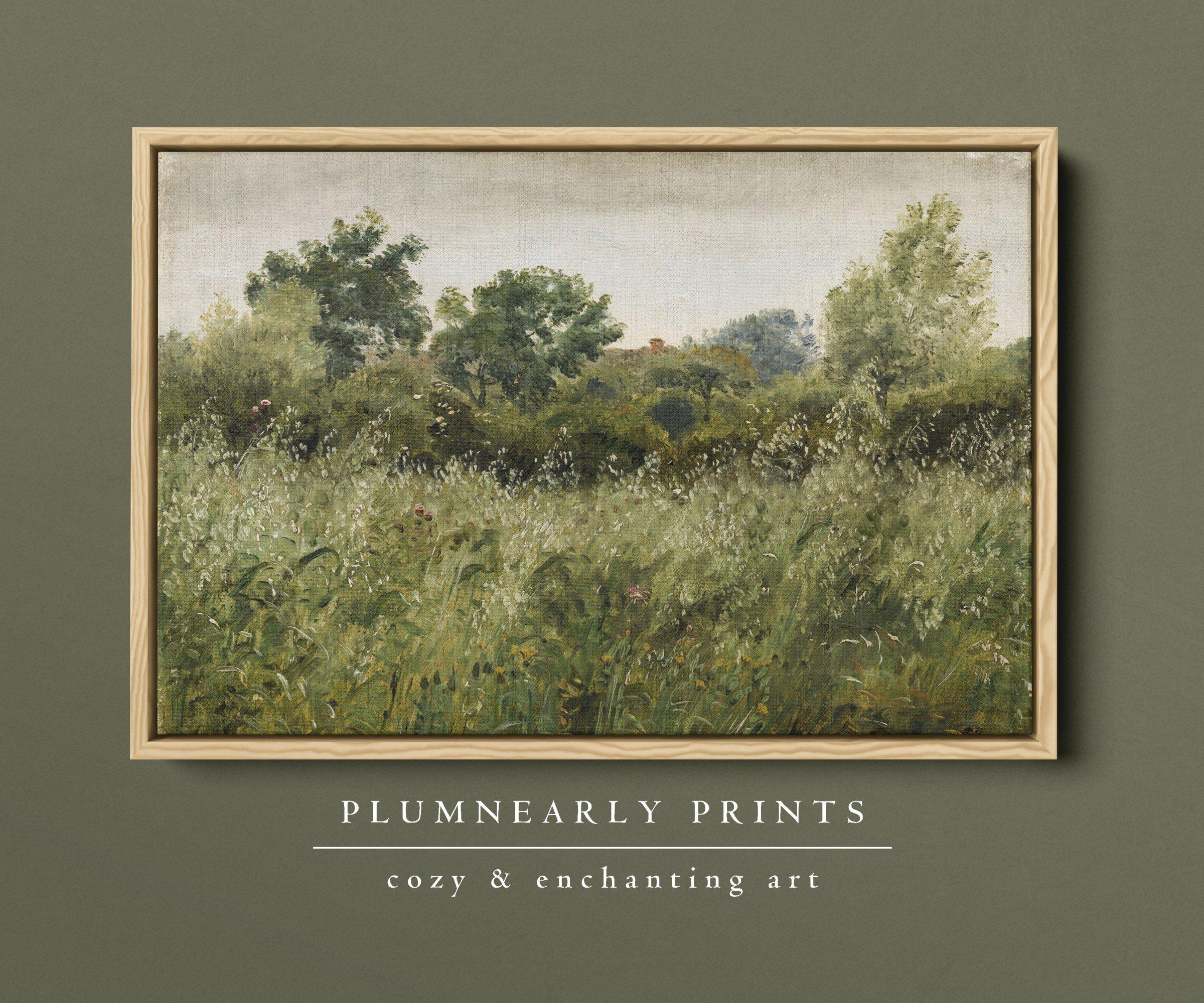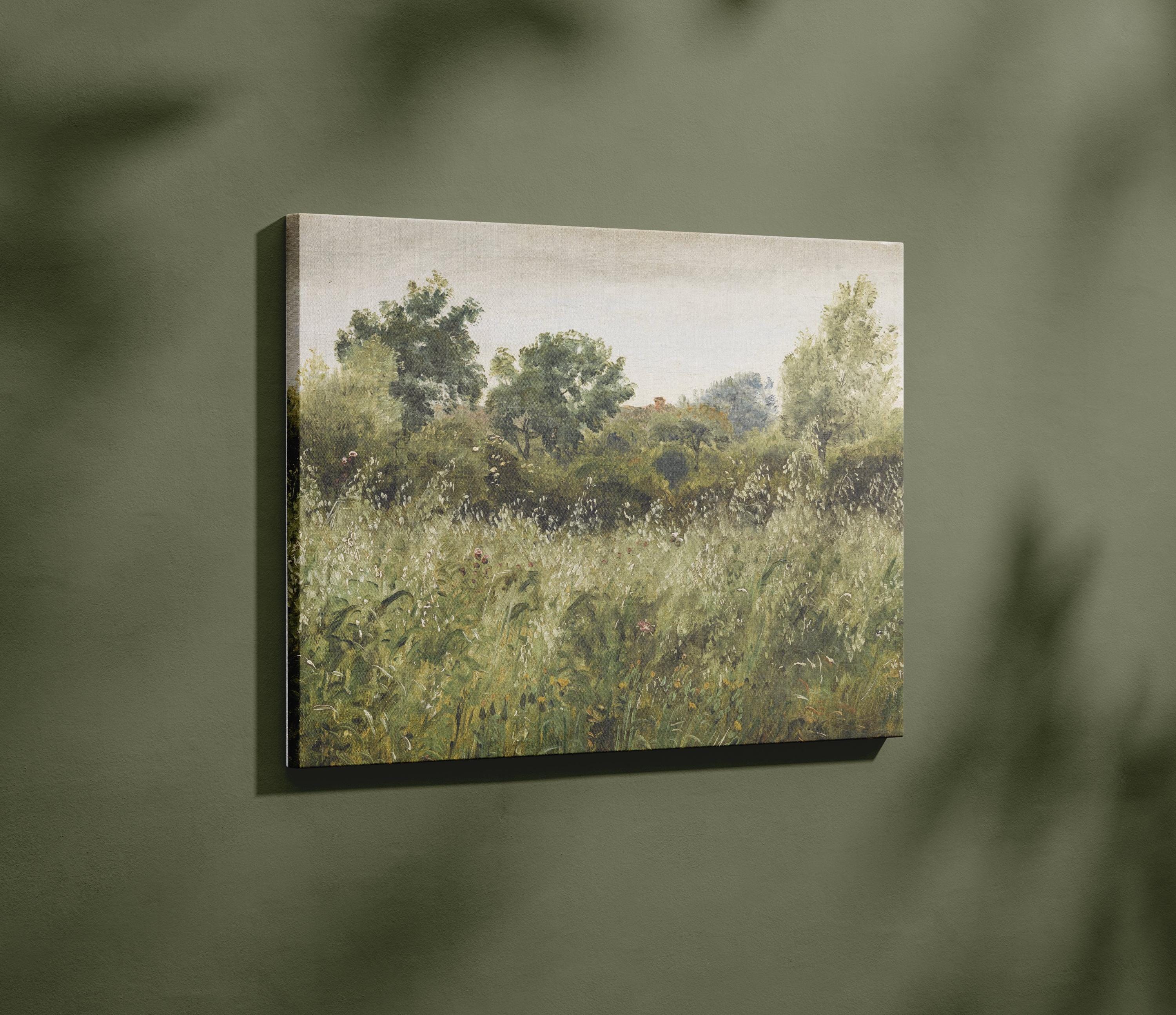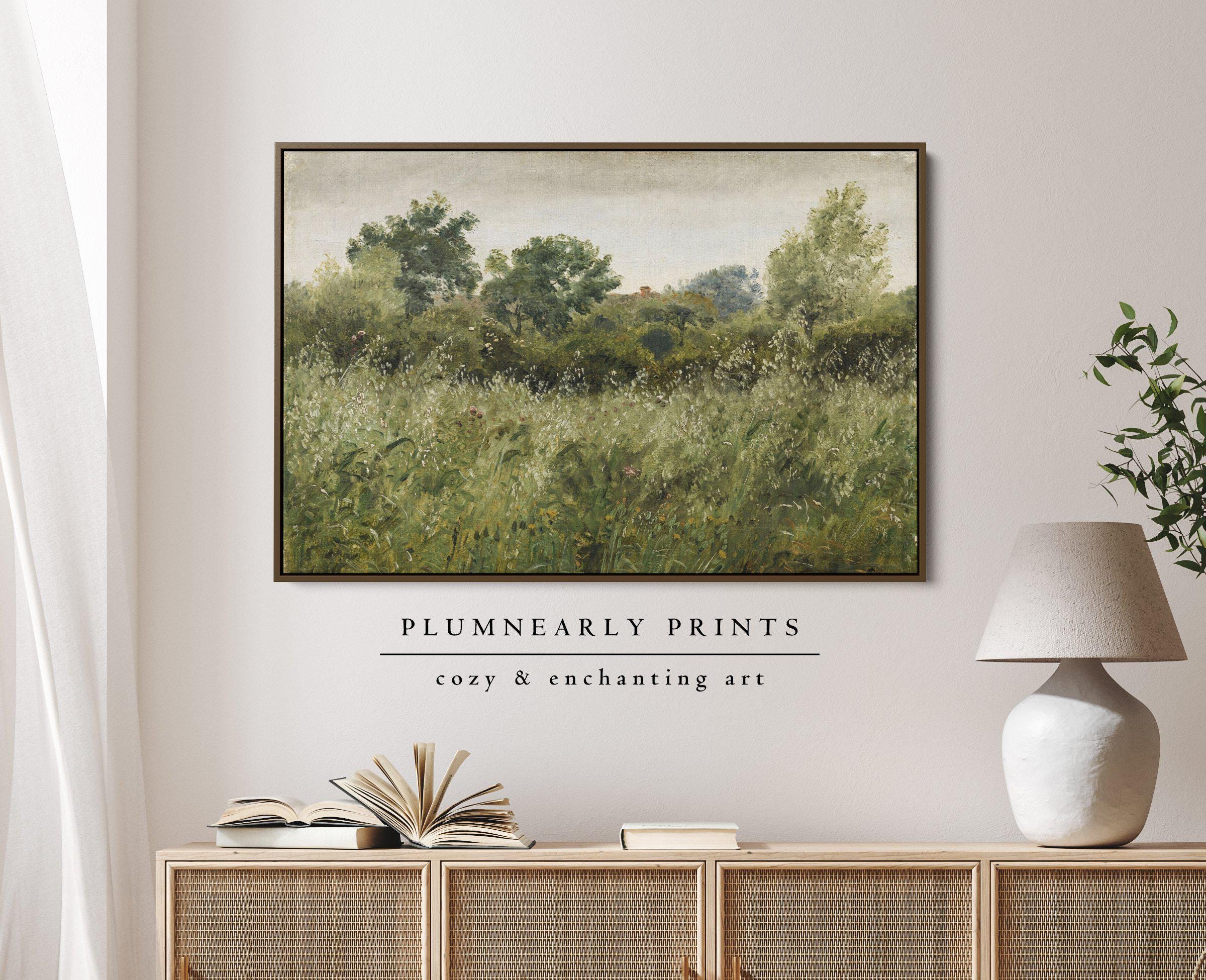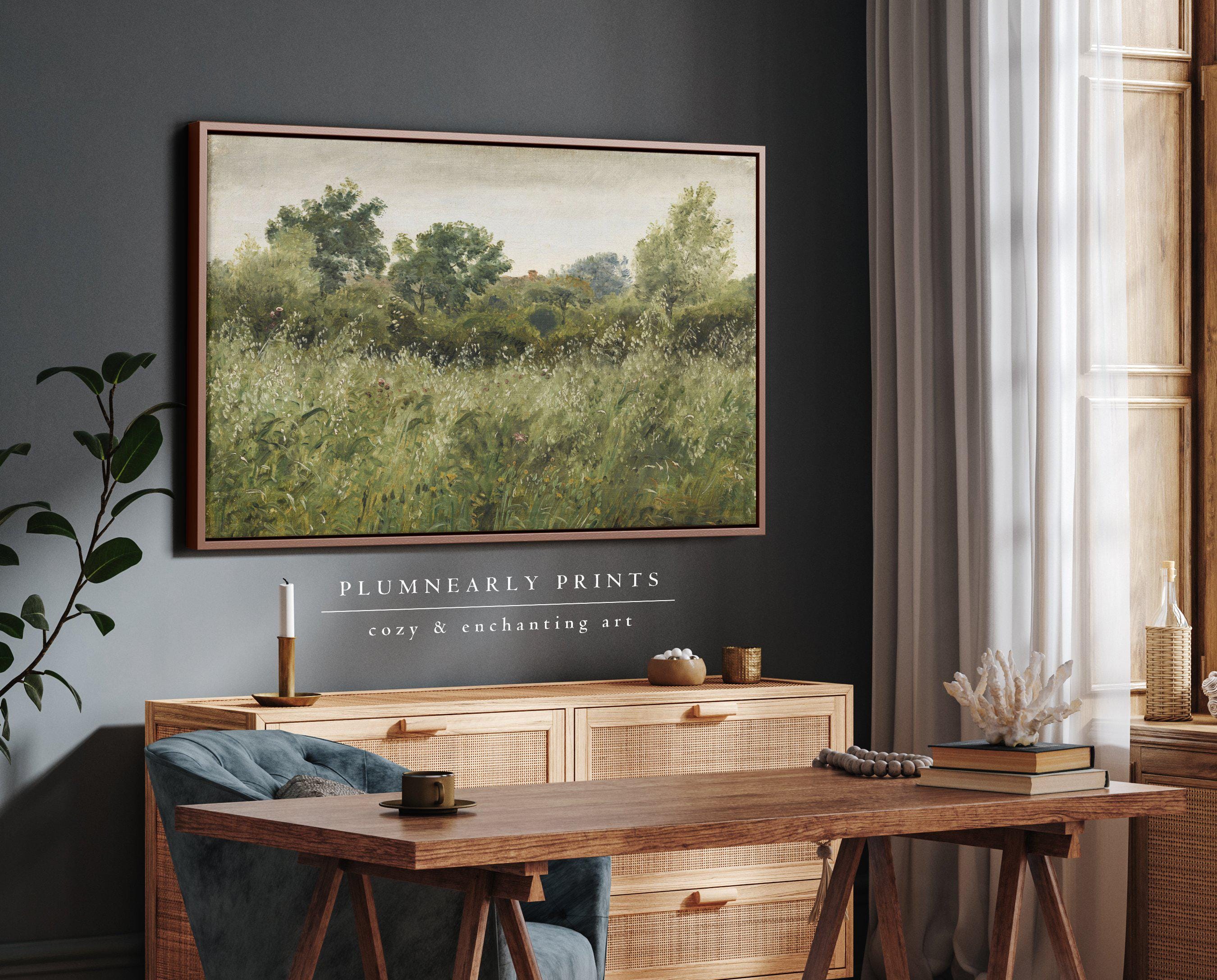 Skovgaard Field of Oats Landscape Oil Painting Framed Canvas, Vintage Cottagecore Countryside Field, Classic Nature Green Wall Decor
