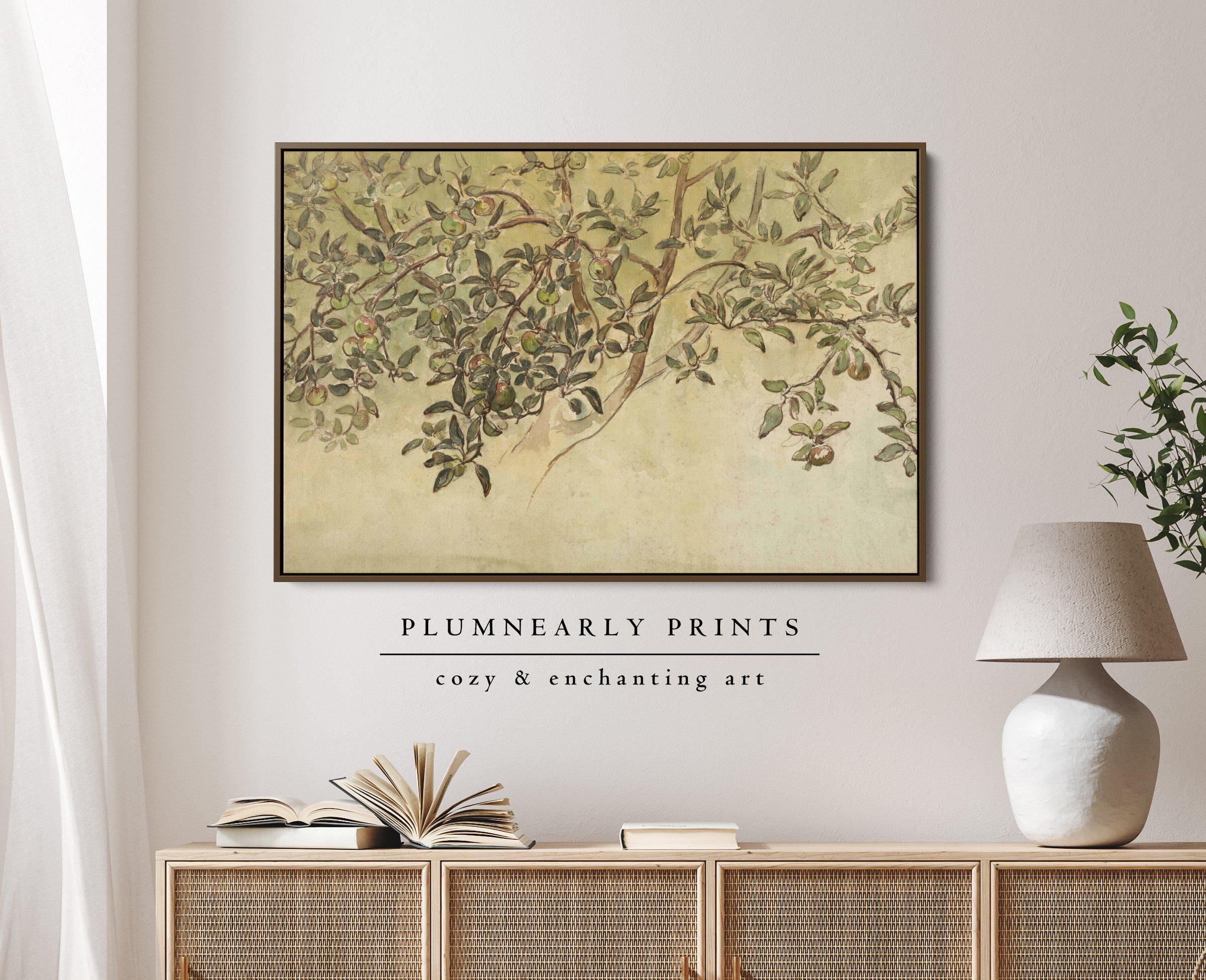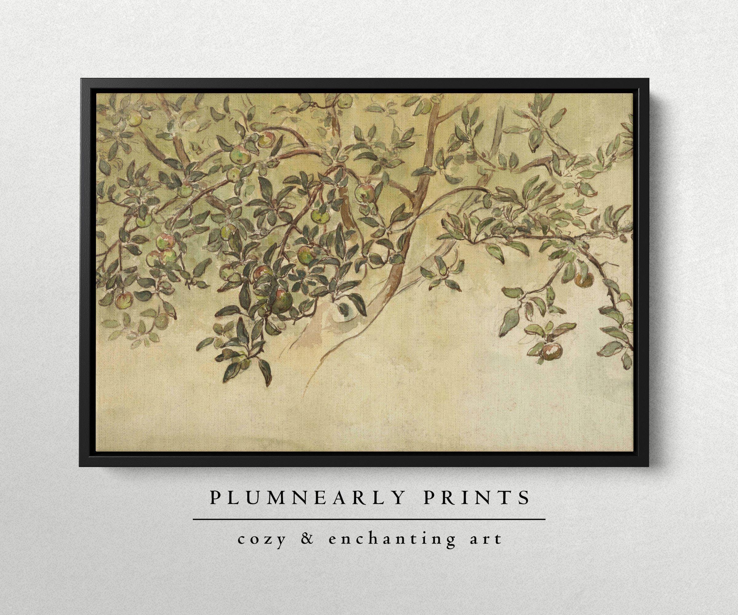 Elevate your home decor with this exquisite vintage painting of apple tree branches laden with fruit: Apple Tree, Study for a Decorative Design, by Walter Shirlaw. Inspired by traditional Asian botanical illustrations, this art print captures the serene beauty of nature in soothing earth tones. Perfect for adding a touch of elegance to any living room, bedroom, or office space. Makes a wonderful gift for nature enthusiasts and art lovers alike.