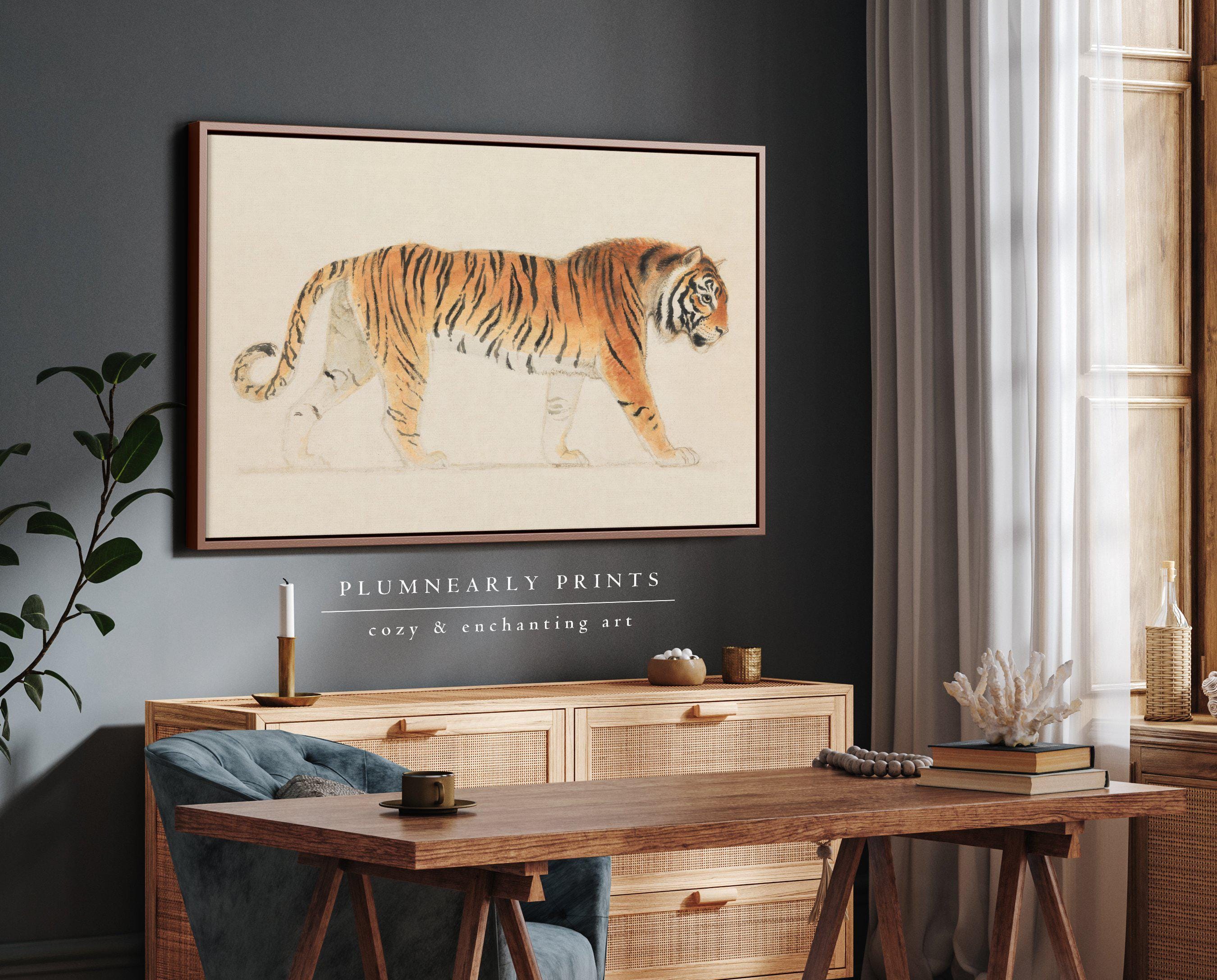 Tiger Watercolor Painting Framed Canvas, Stothard Vintage Jungle Animal Illustration Wall Art, Maximalist Big Cat Lover Gift Home Decor