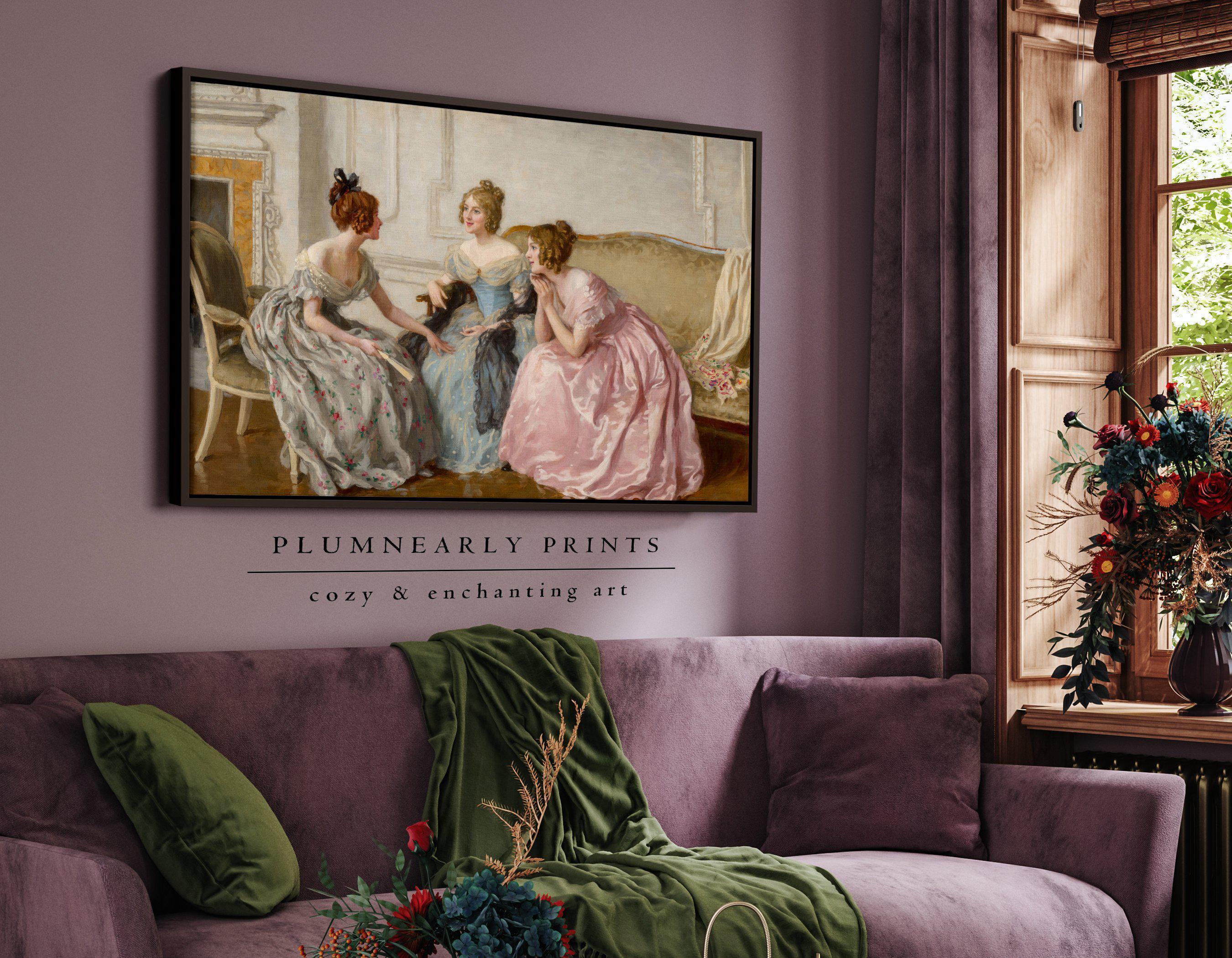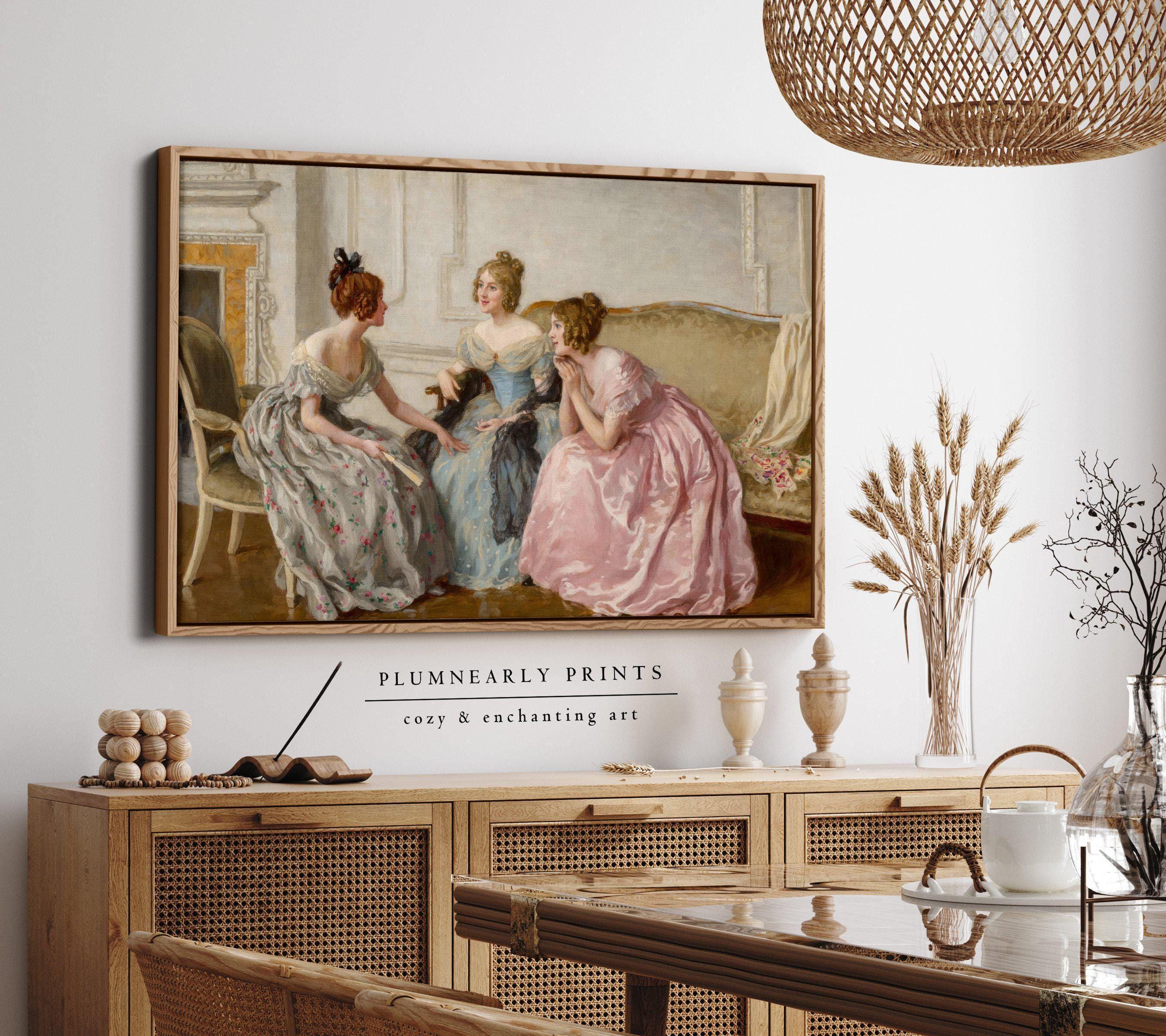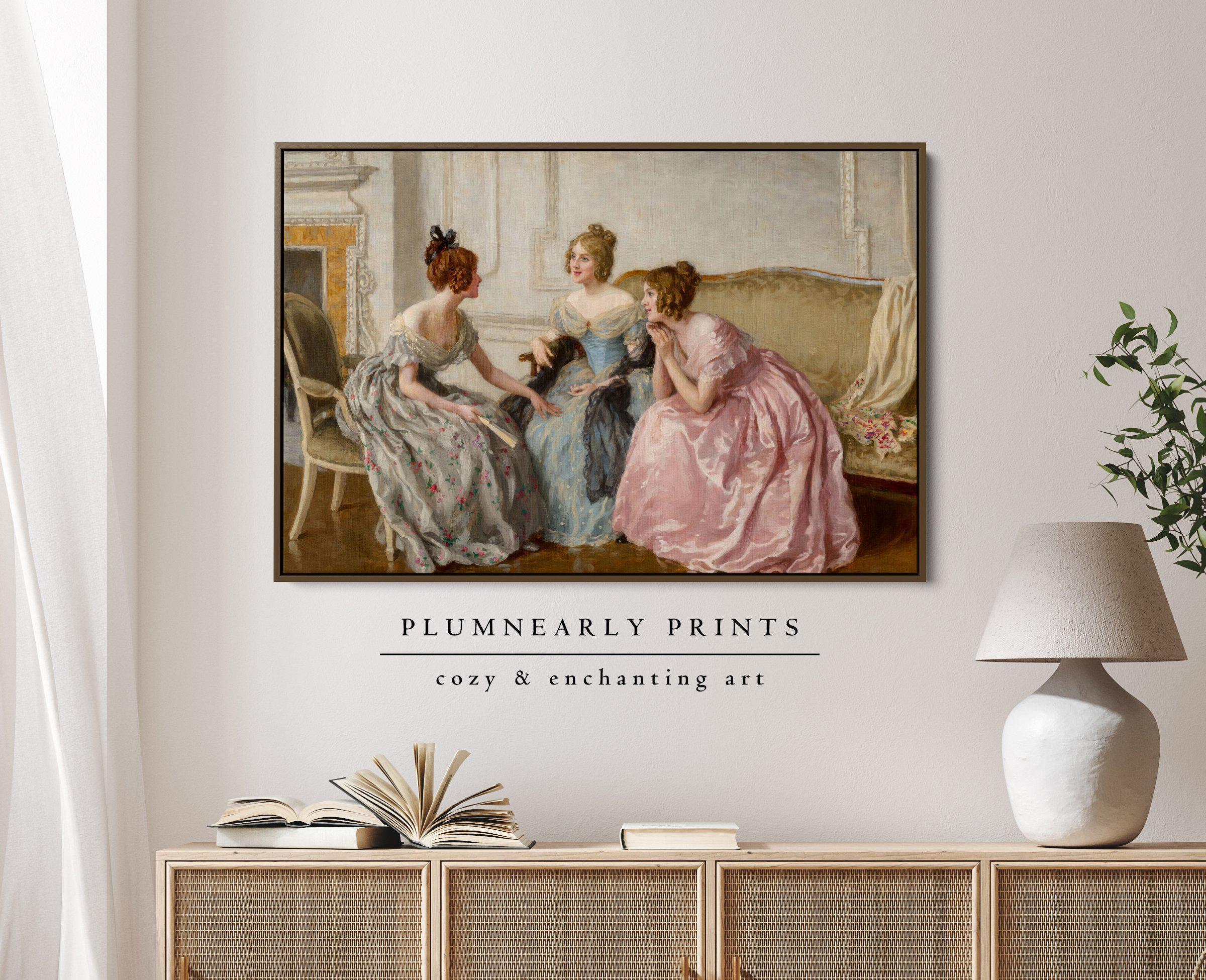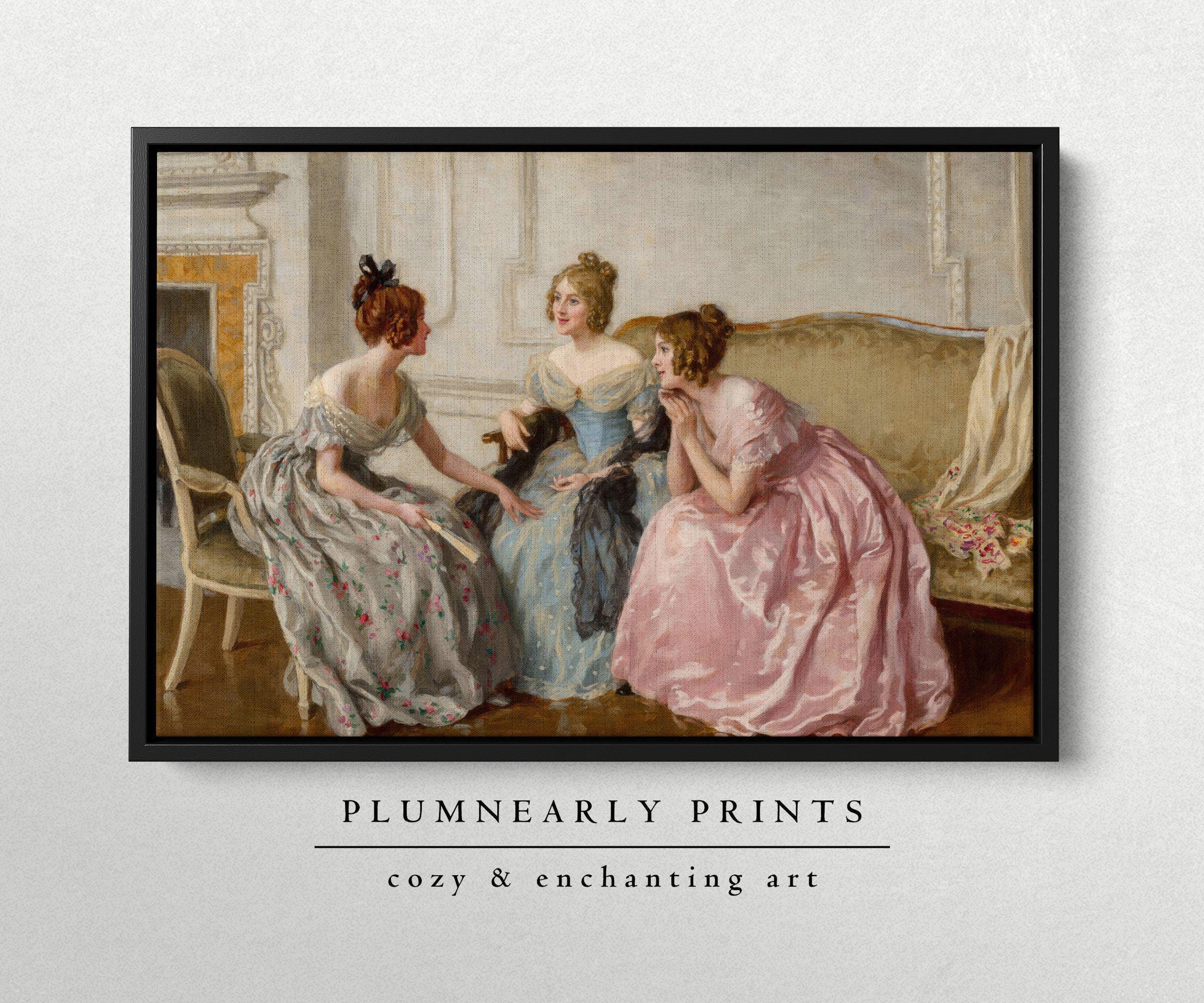 Haigh-Wood Gossip Portrait Oil Painting Framed Canvas, Classic Elegant Regency Dress Women, Jane Austen British Literature Bookish Decor