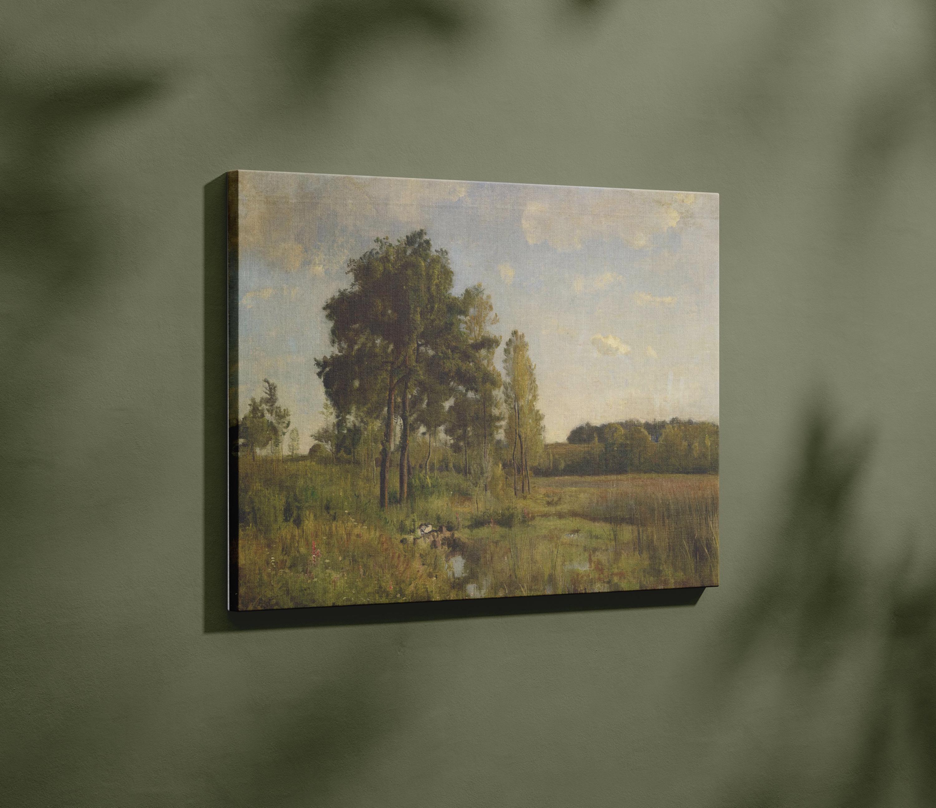 Bring the serenity and beauty of the countryside into your home with this high-quality print of a classic landscape painting: Marécage, by Barthélemy Menn. This timeless artwork features a serene scene of lush trees, a tranquil pond, and a distant meadow, enveloped in a calm atmosphere. Perfect for adding a touch of peaceful elegance to any room, this print will captivate and charm all who see it. Ideal for nature lovers and art aficionados alike.