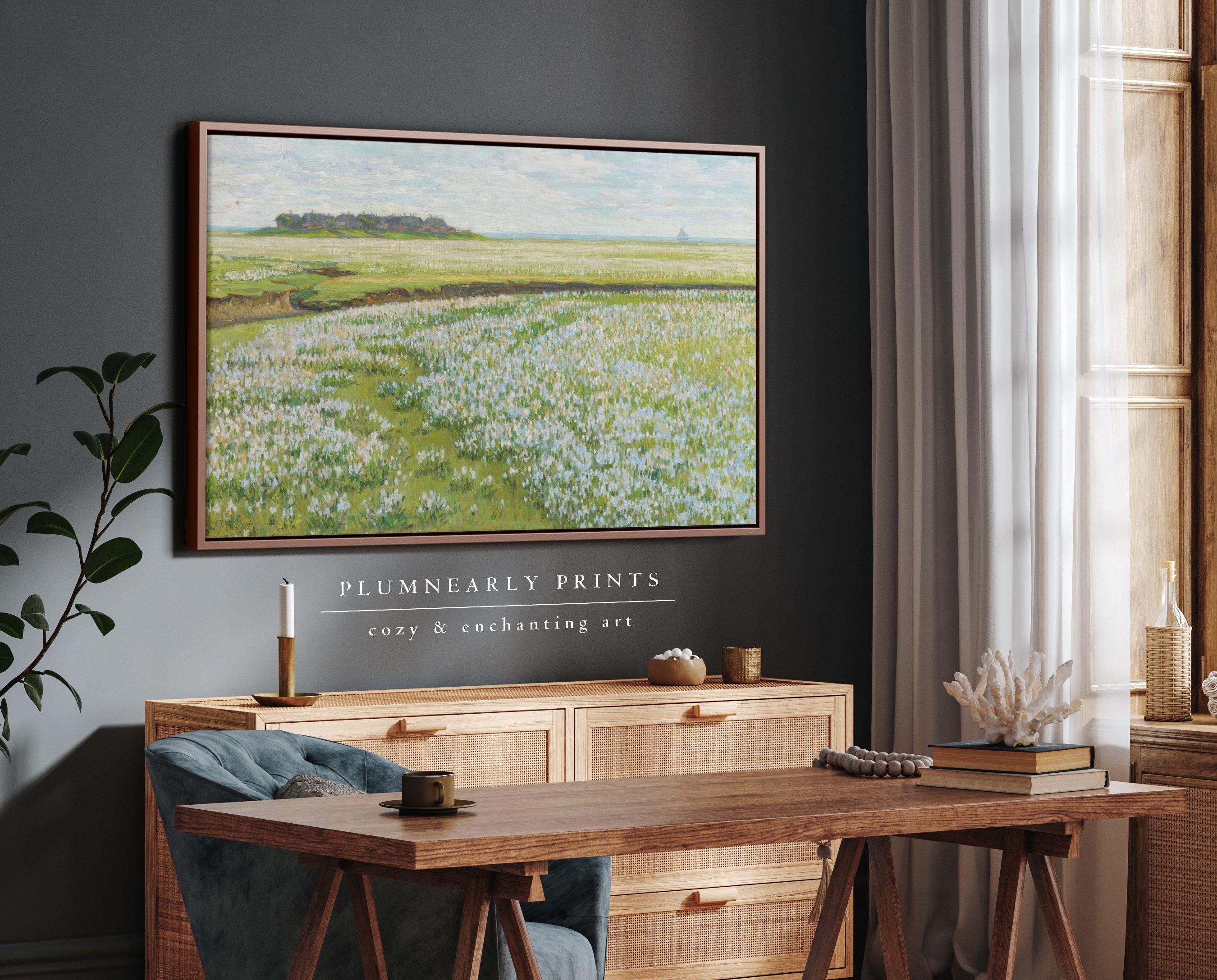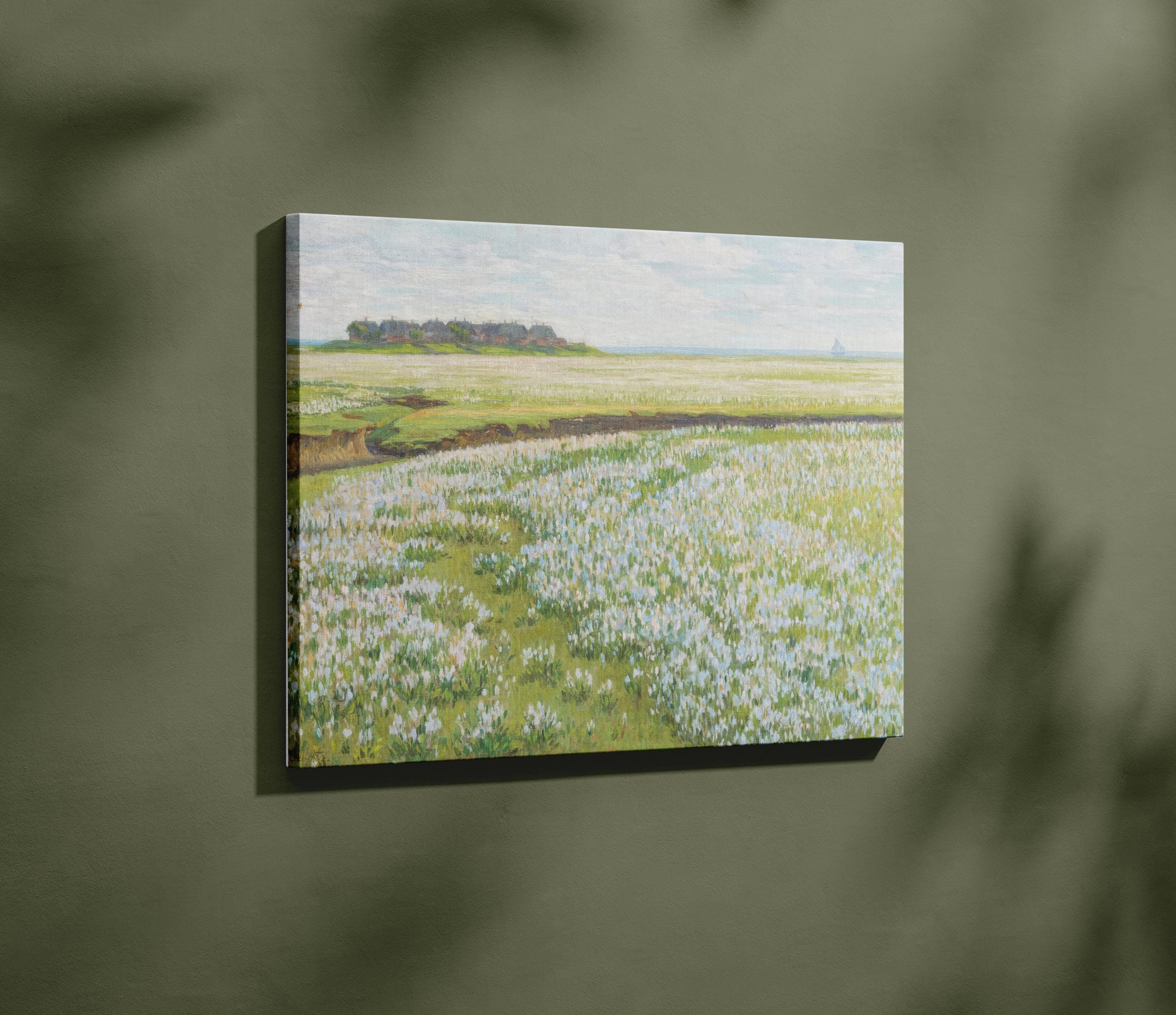 Bring a touch of tranquil beauty to your home with this stunning print of an Impressionist landscape painting: A Vast Summer Landscape, by Jacob Alberts. Featuring a soothing coastal meadow scene, the artwork captures a peaceful day with rich hues and vibrant flora. Perfect for those who appreciate nature and classic art styles, this high-quality print will elevate any room's aesthetics and create a calming atmosphere.