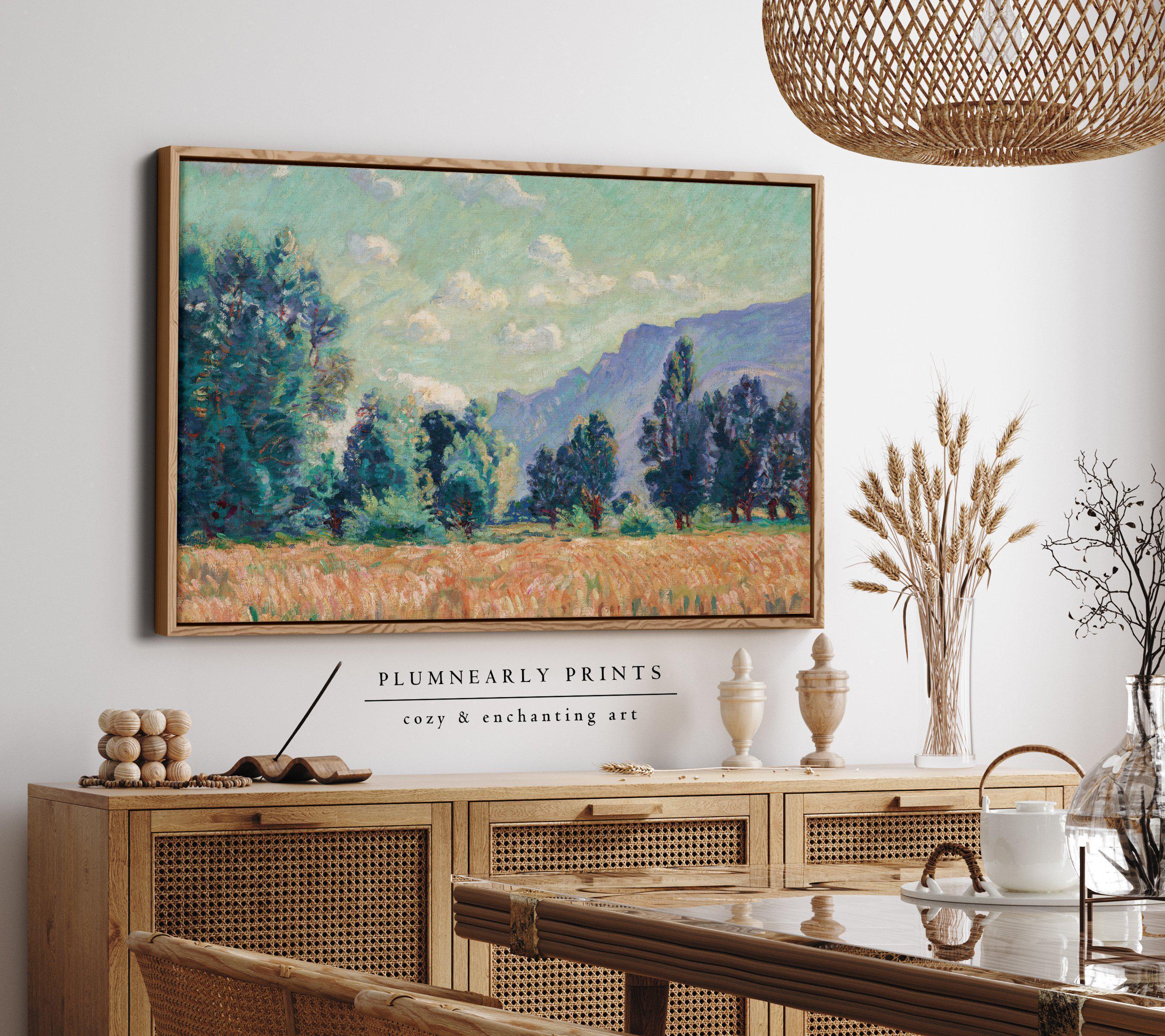 Discover tranquility and vibrant colors with this vintage impressionist landscape wall art. Perfect for adding a maximalist, modern touch to your space. This French country scene brings both romantic and bold statement decor to any room, capturing the essence of nature in a colorful, serene setting. Ideal for art lovers and those seeking a unique piece to enhance their decor.