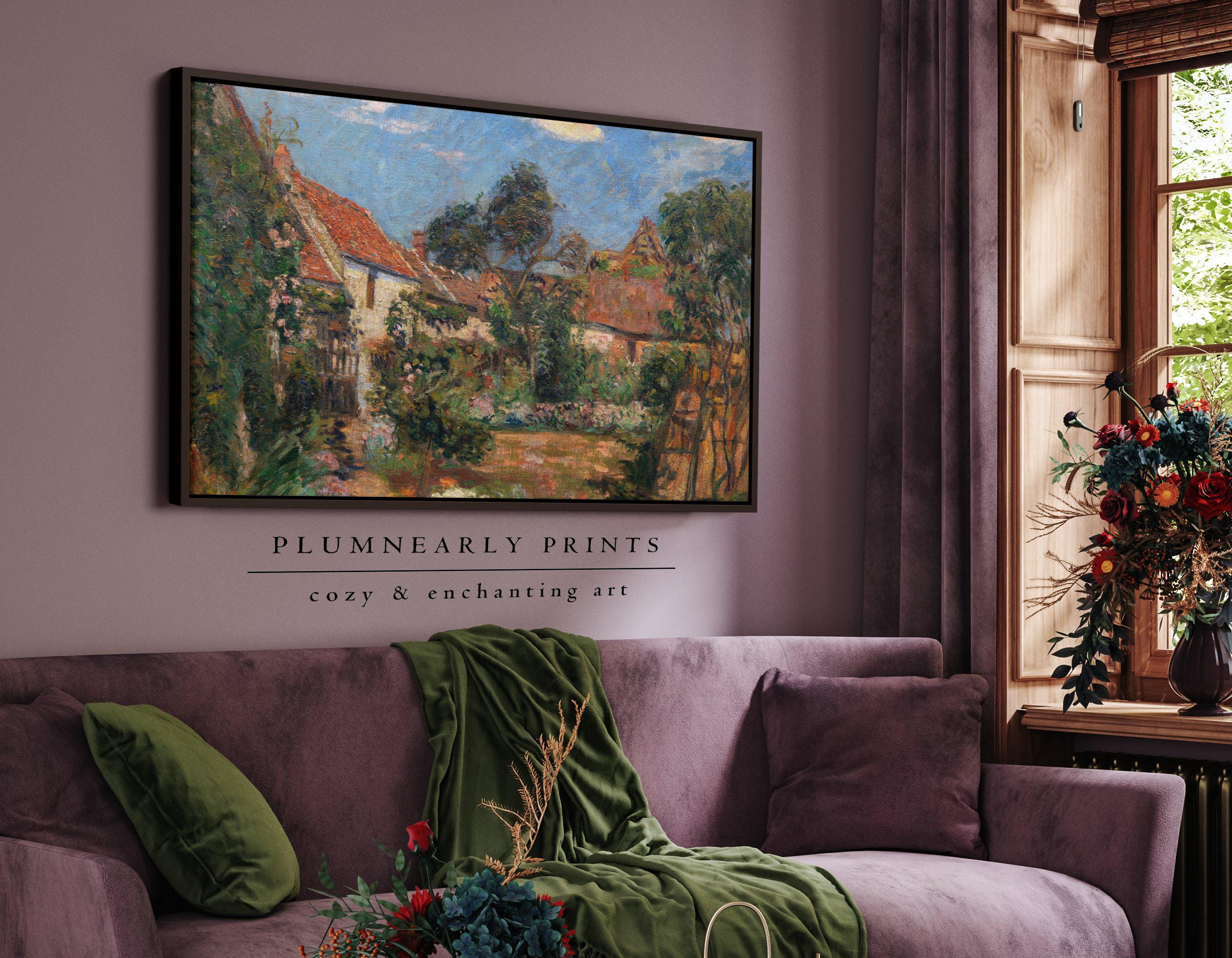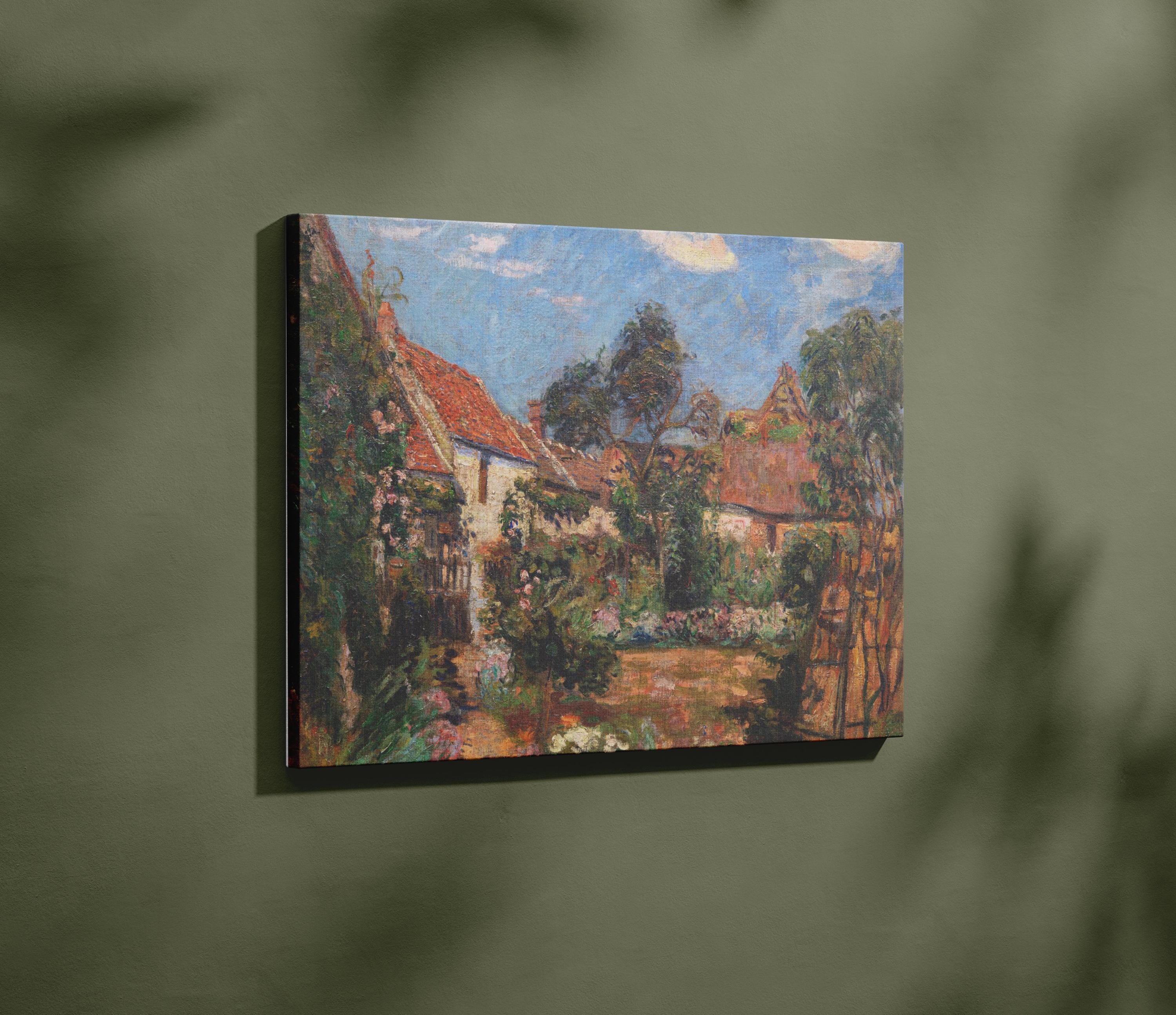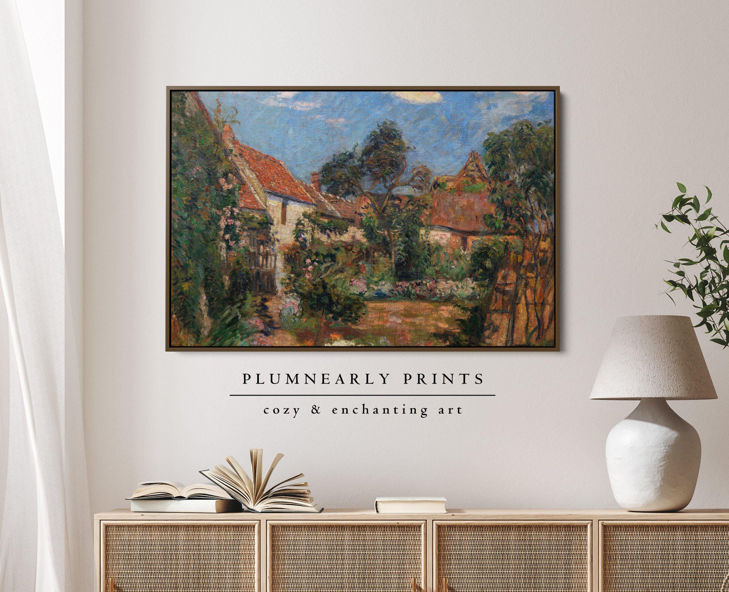 Guillaumin Floral Cottage Garden Landscape Framed Canvas, Impressionist French Country Romantic Forest Olive Green Cinnamon Orange Decor