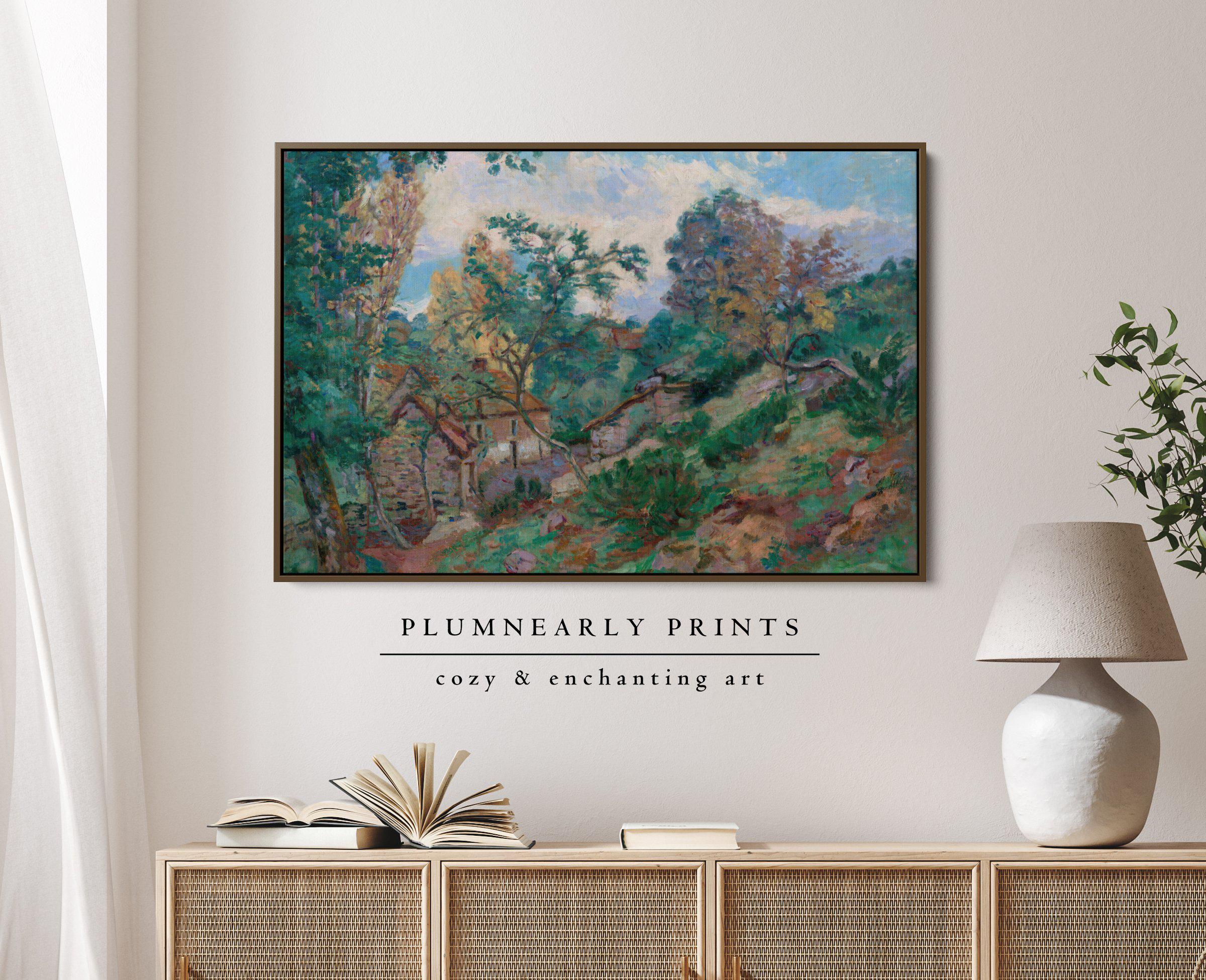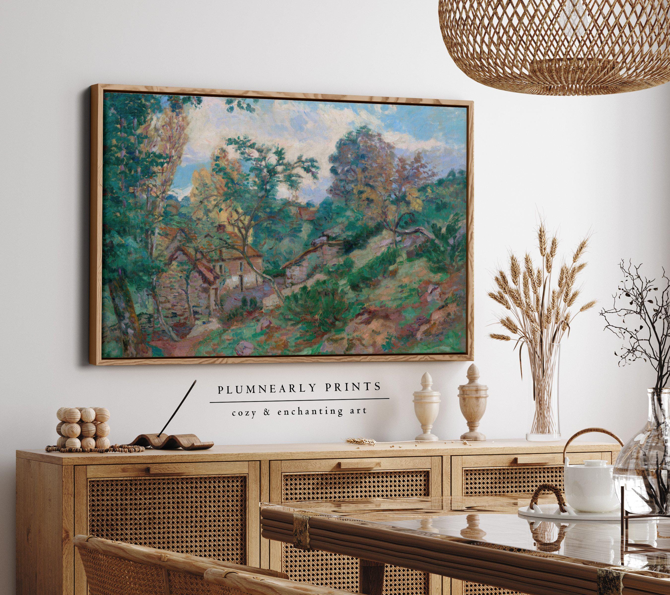 Guillaumin Forest Green Countryside Landscape Framed Canvas, Vintage Impressionist Oil Painting, Vibrant Maximalist French Country Decor