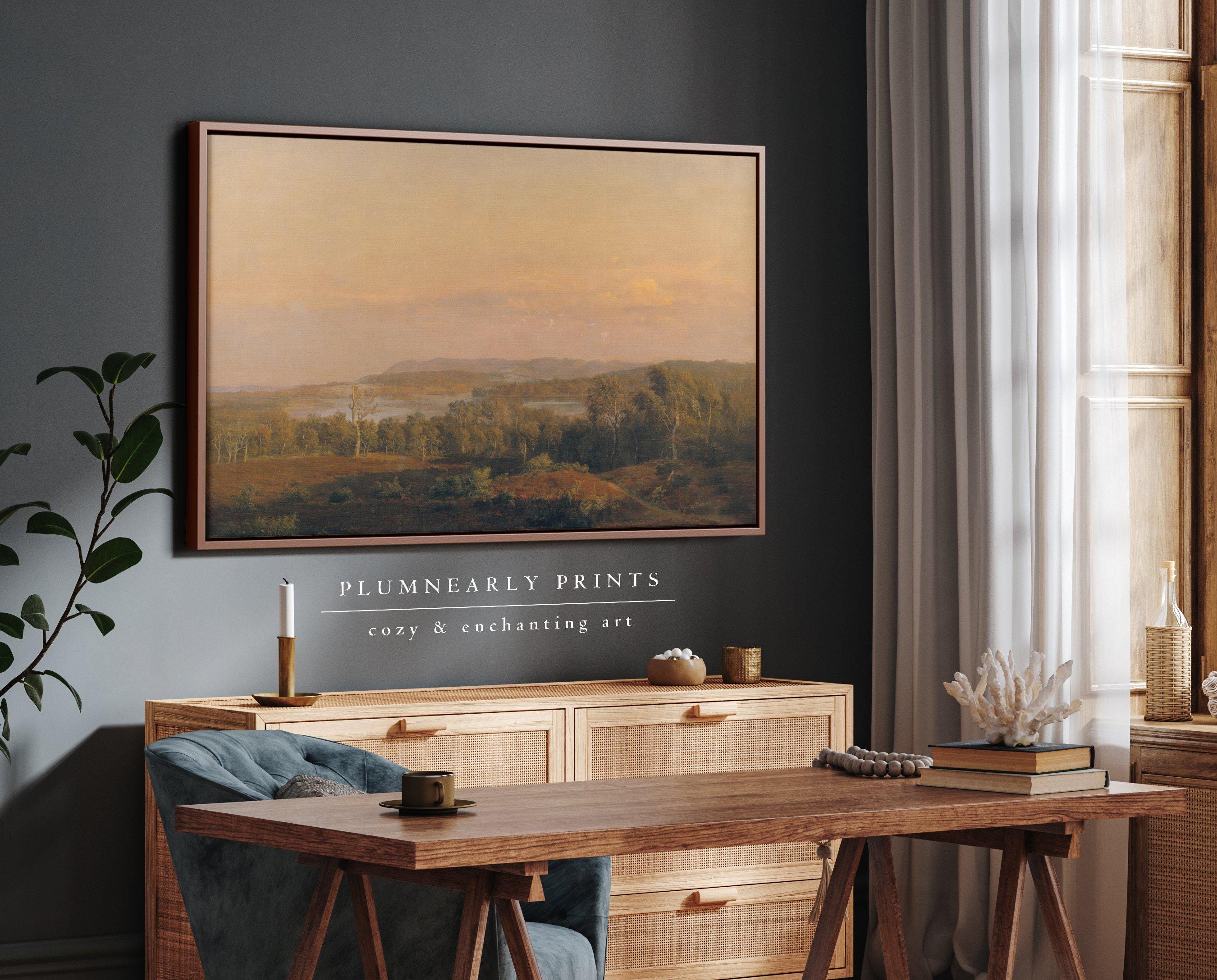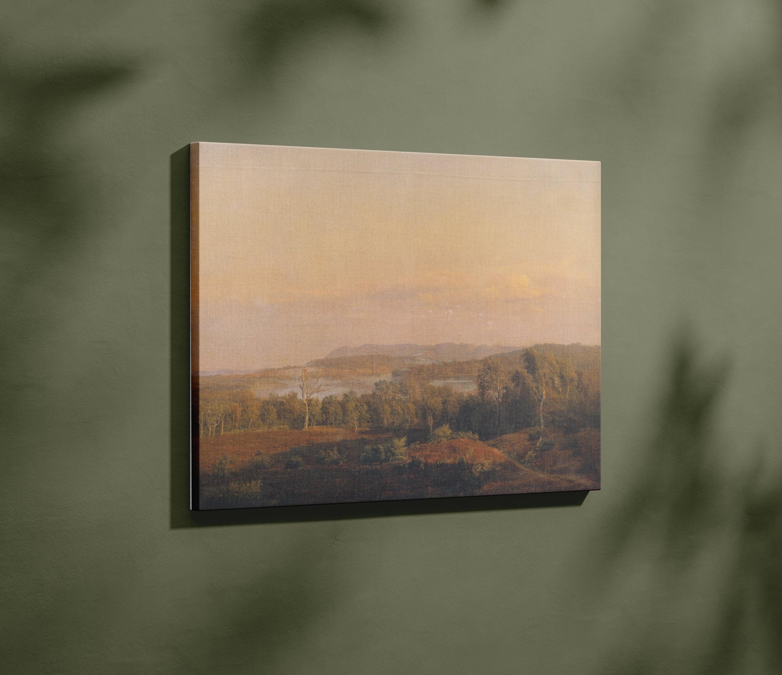 Enhance your home decor with this vintage landscape wall art by 19th century Danish painter Dankart Dreyer. This antique Scandinavian painting captures a serene countryside scene, perfect for adding a touch of rustic farmhouse charm to your space. Ideal for lovers of romantic cottagecore aesthetics, this art piece embodies neutral tones with hints of beige and sage green, making it a versatile addition to any room. Transform your living area, bedroom or office with this timeless and peaceful artwork that evokes the charm of an English countryside or French country setting.