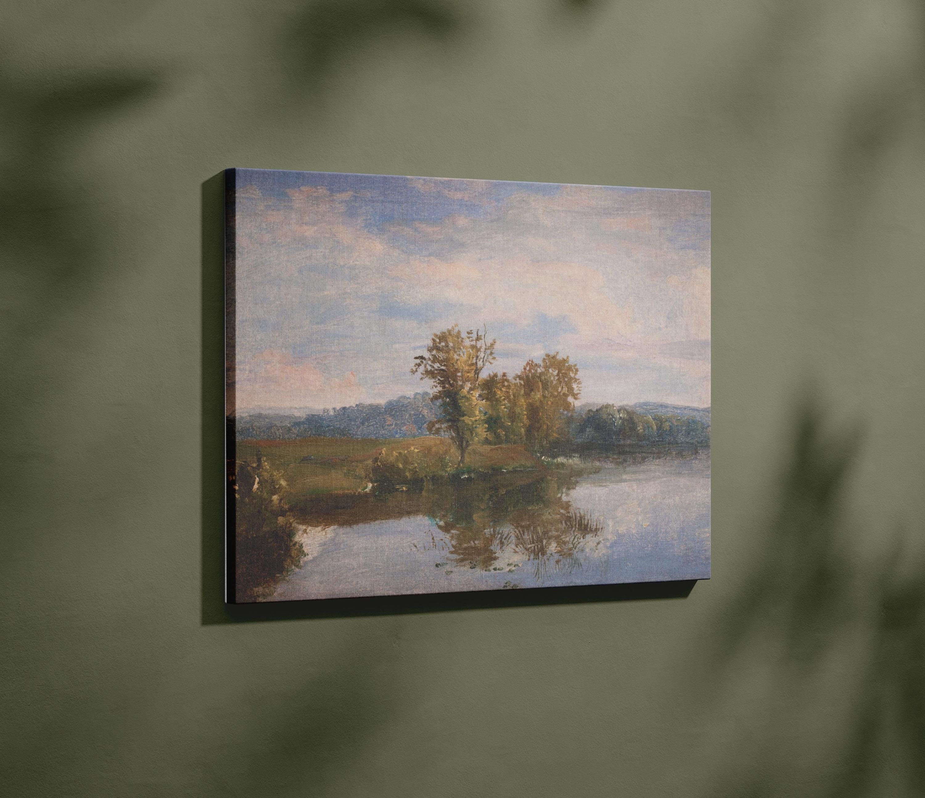 This vintage landscape wall art features a serene countryside scene by the 19th century Danish landscape painter Dankart Dreyer. Perfect addition to any rustic farmhouse, cottagecore, or romantic country decor. The neutral tones of beige and sage green create a calming atmosphere, making it an ideal piece for living rooms, bedrooms, or any space in need of a touch of antique charm. Transform your home with this elegant and timeless wall art, capturing the essence of the English countryside and French country aesthetics.