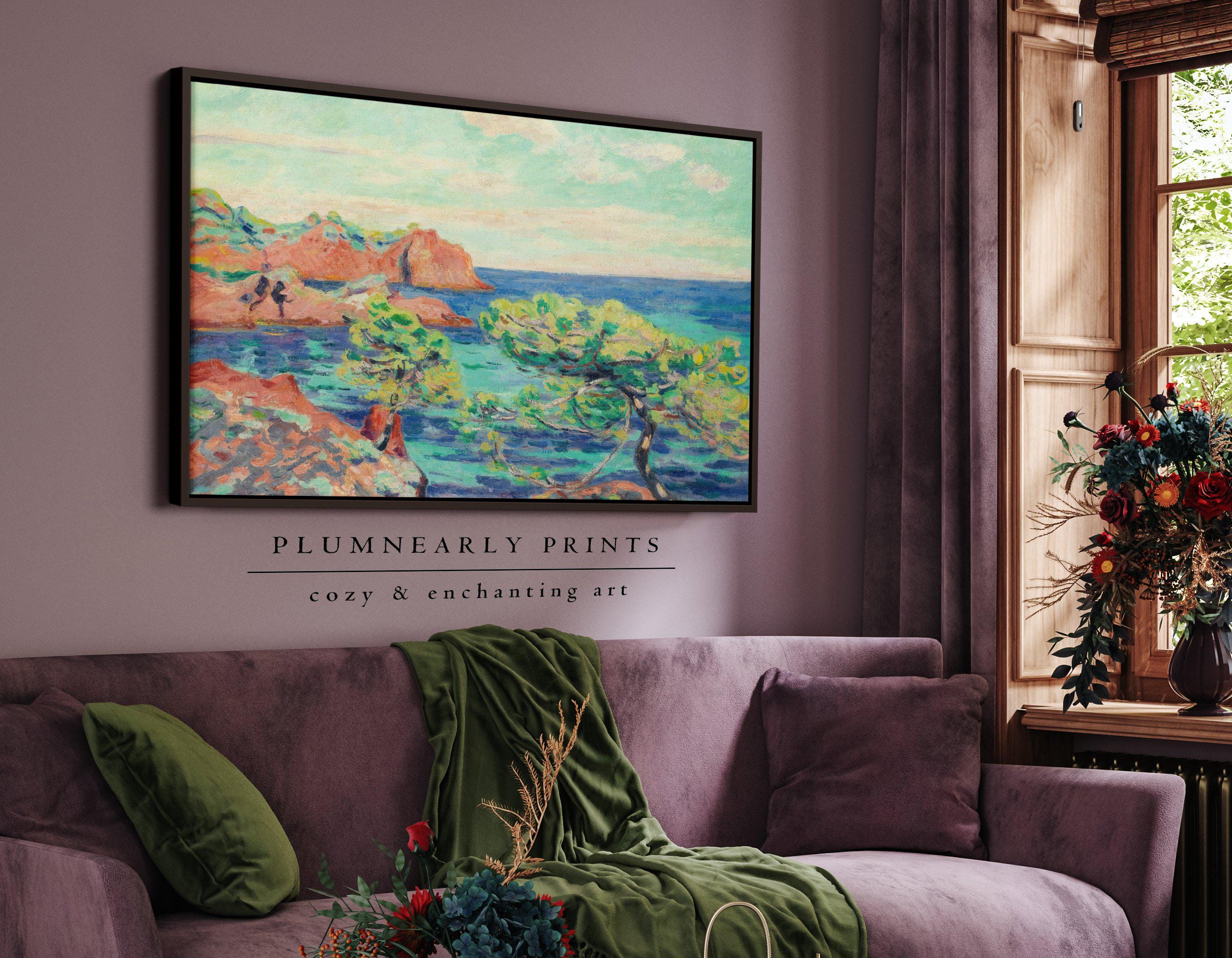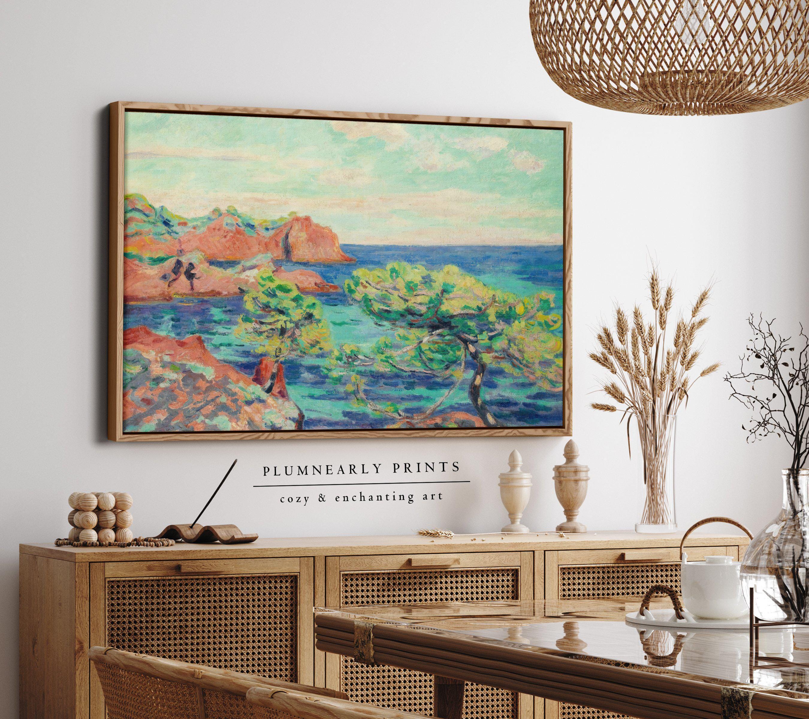 Elevate your space with this vintage French impressionist landscape oil painting by Armand Guillaumin. Featuring vibrant and bold colors, this maximalist wall art brings a touch of French country romance to your decor. Perfect for modern homes looking for a statement piece that combines classic art with contemporary vibrancy.