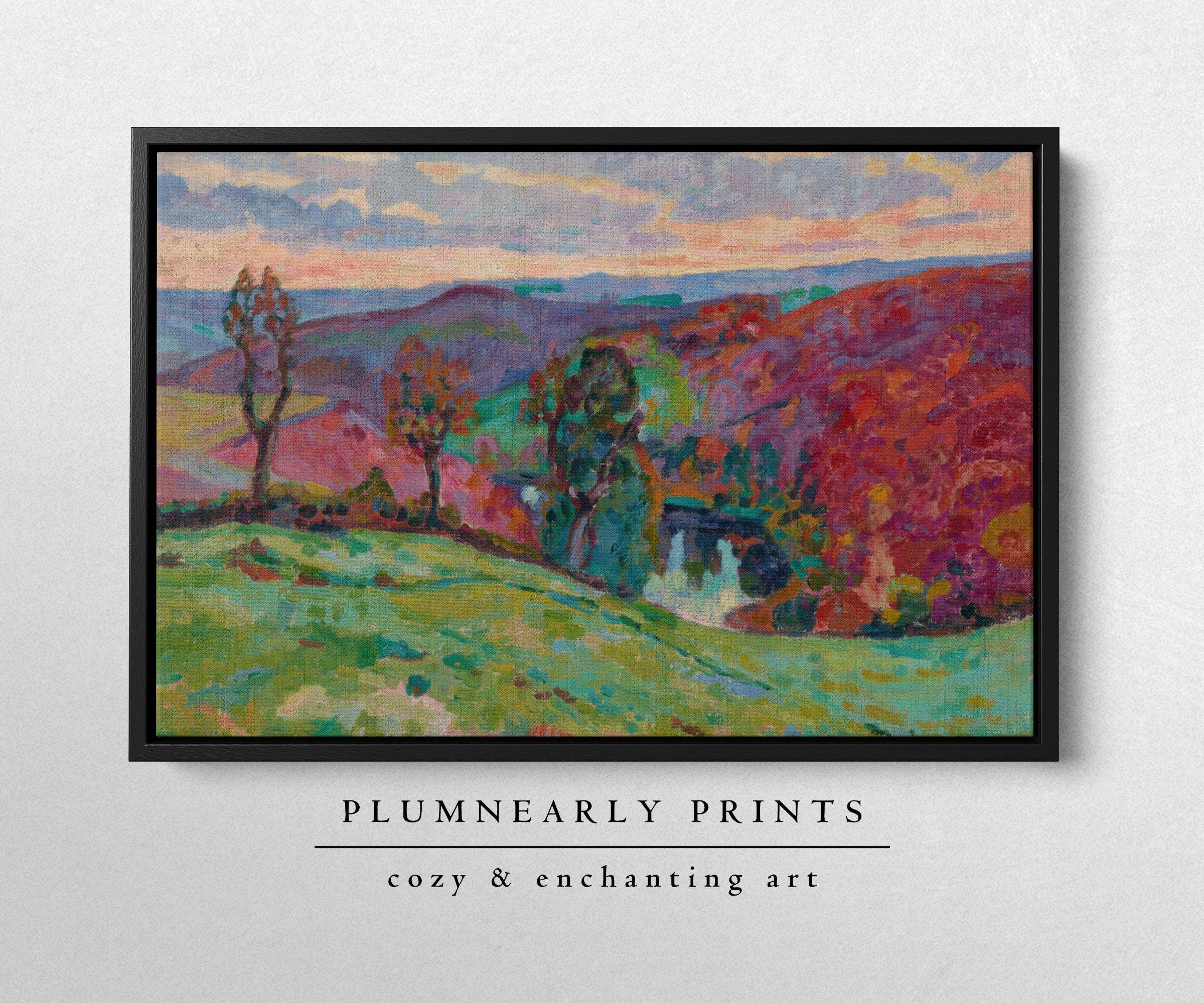 Add a vibrant touch to your home decor with this stunning impressionist landscape art by Armand Guillaumin. This bold and colorful vintage piece captures the essence of romantic French country with its maximalist style. Perfect for modern statement decor, this painting will bring life and energy to any space.