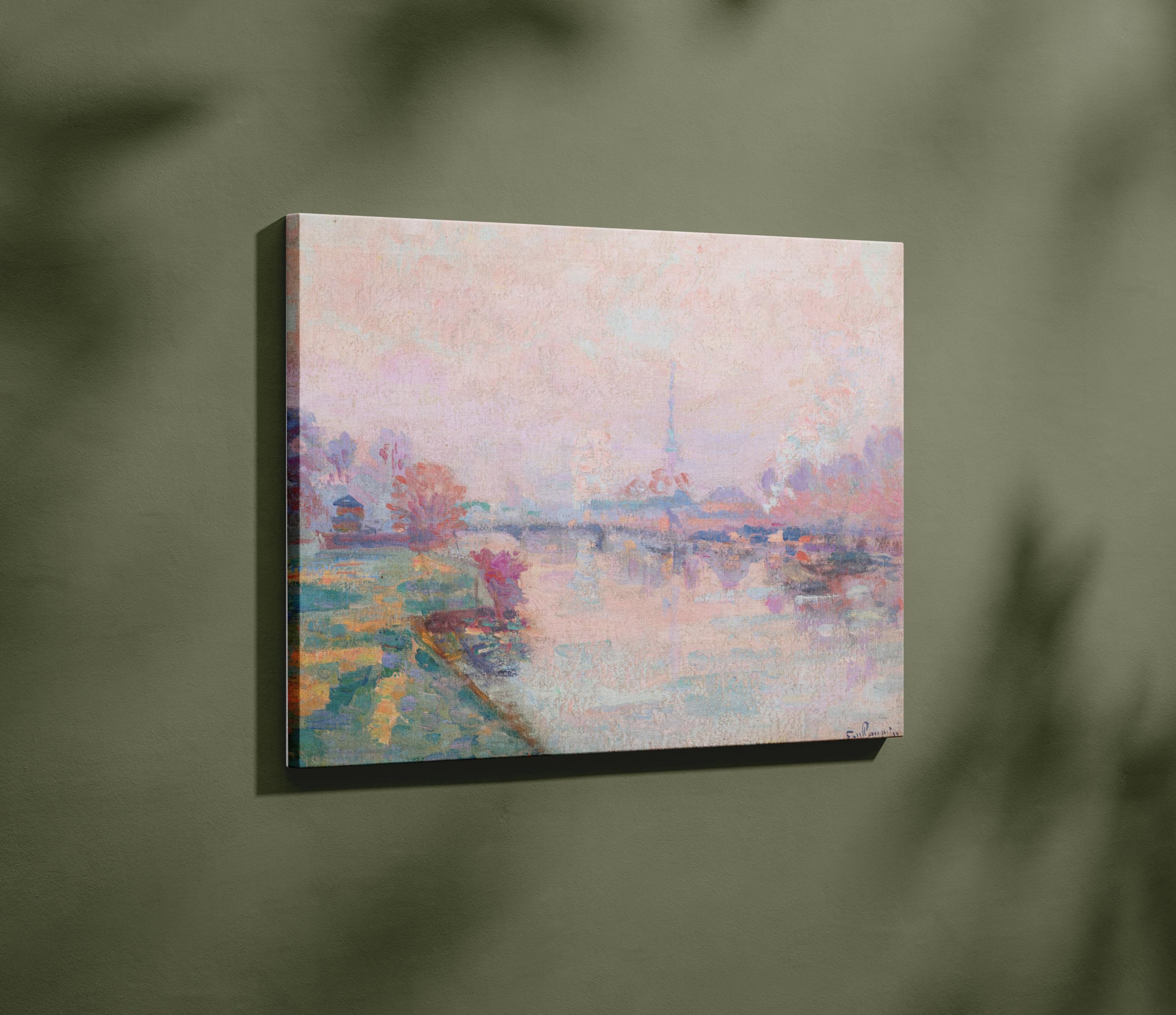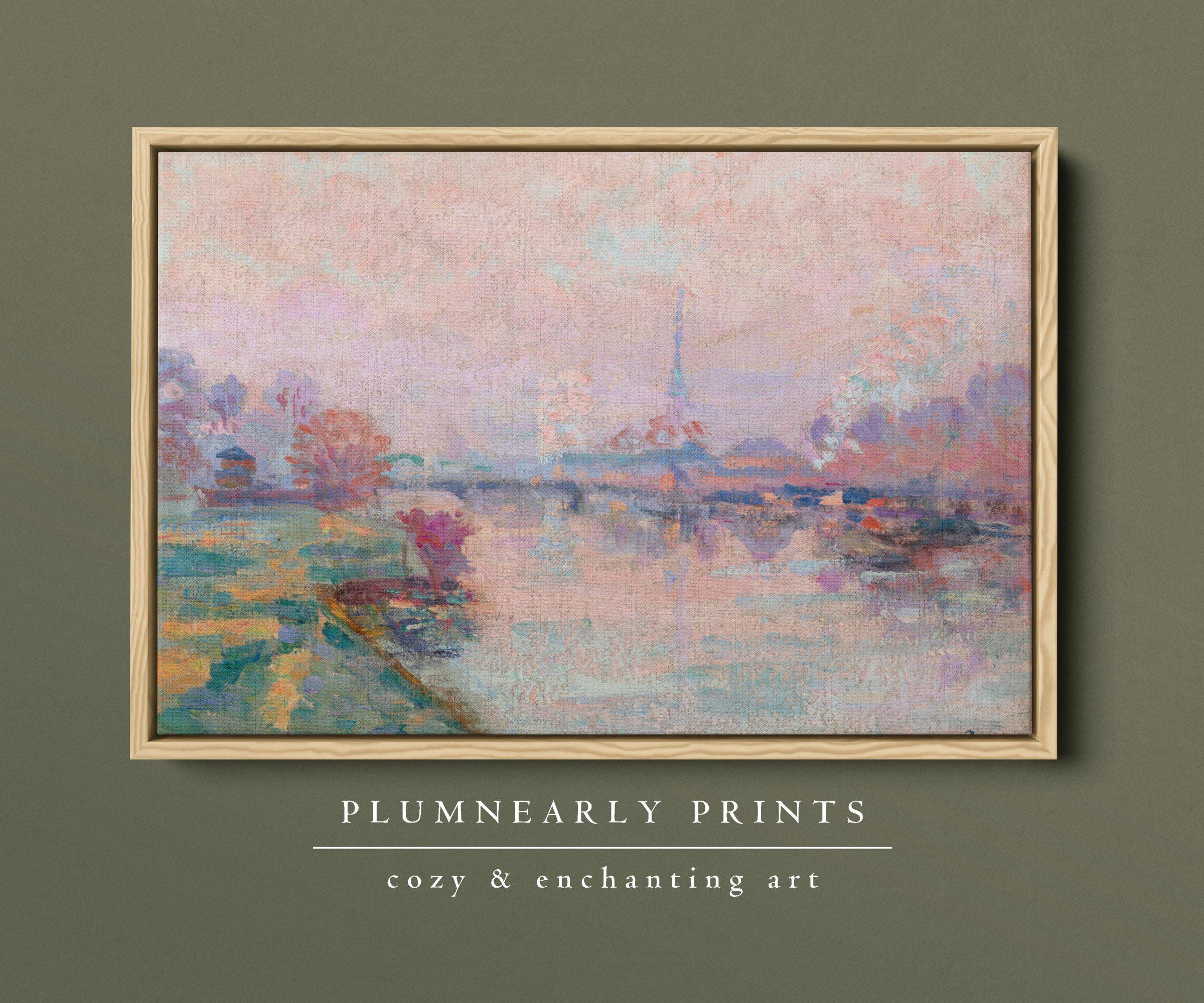 Guillaumin Ethereal Paris Seine River Landscape Framed Canvas, Tea Rose Blush Powder Pink Aquamarine Icy Blue Oil Painting Wall Decor