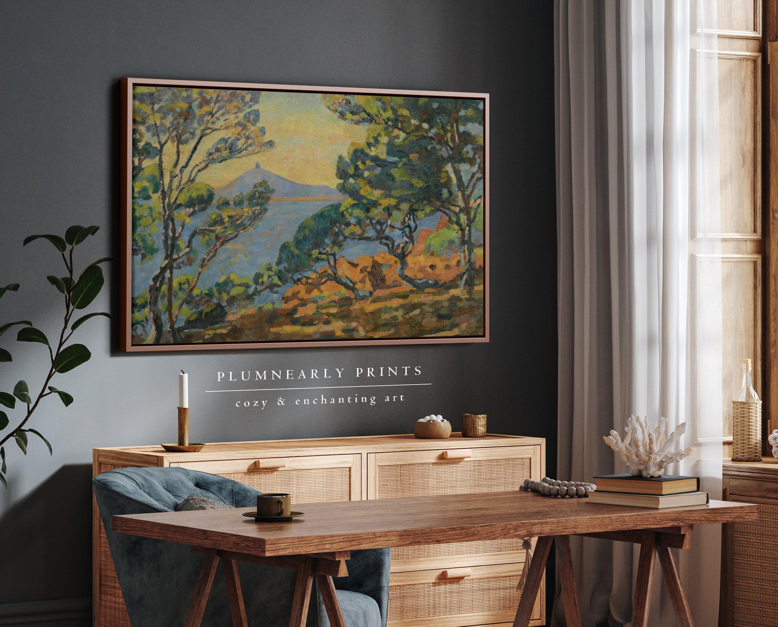 This vintage French impressionist landscape art by Armand Guillaumin offers a bold, maximalist touch to any room. Featuring vibrant colors and a romantic scene, this wall decor piece stands out as a statement, bringing a touch of the French countryside into your modern home. Perfect for those who cherish vibrant and colorful artwork, this art print is a beautiful addition that highlights the striking impressionist style of Guillaumin.